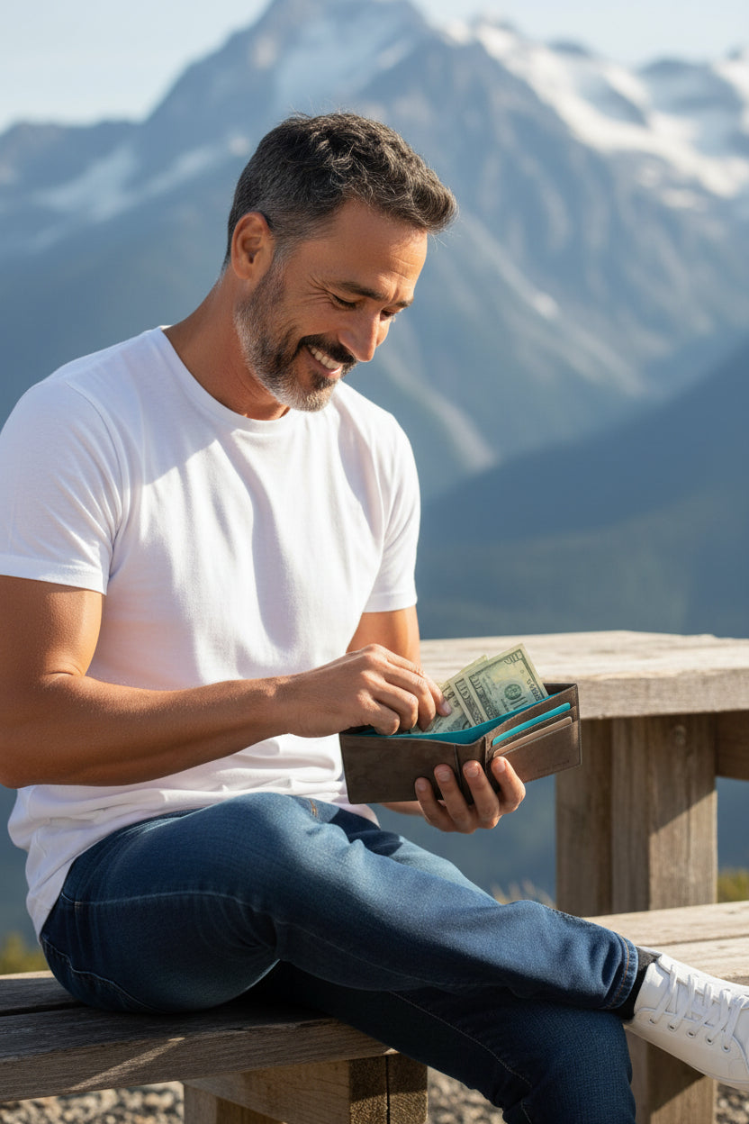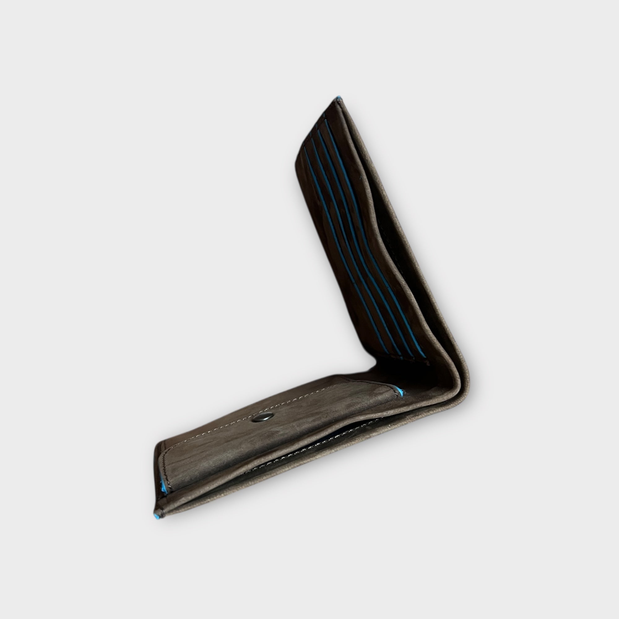 Portafoglio slim in pelle nabuk con portamonete, fatto a mano in Italia. Compatto, morbido e raffinato, ideale per carte, contanti e monete.