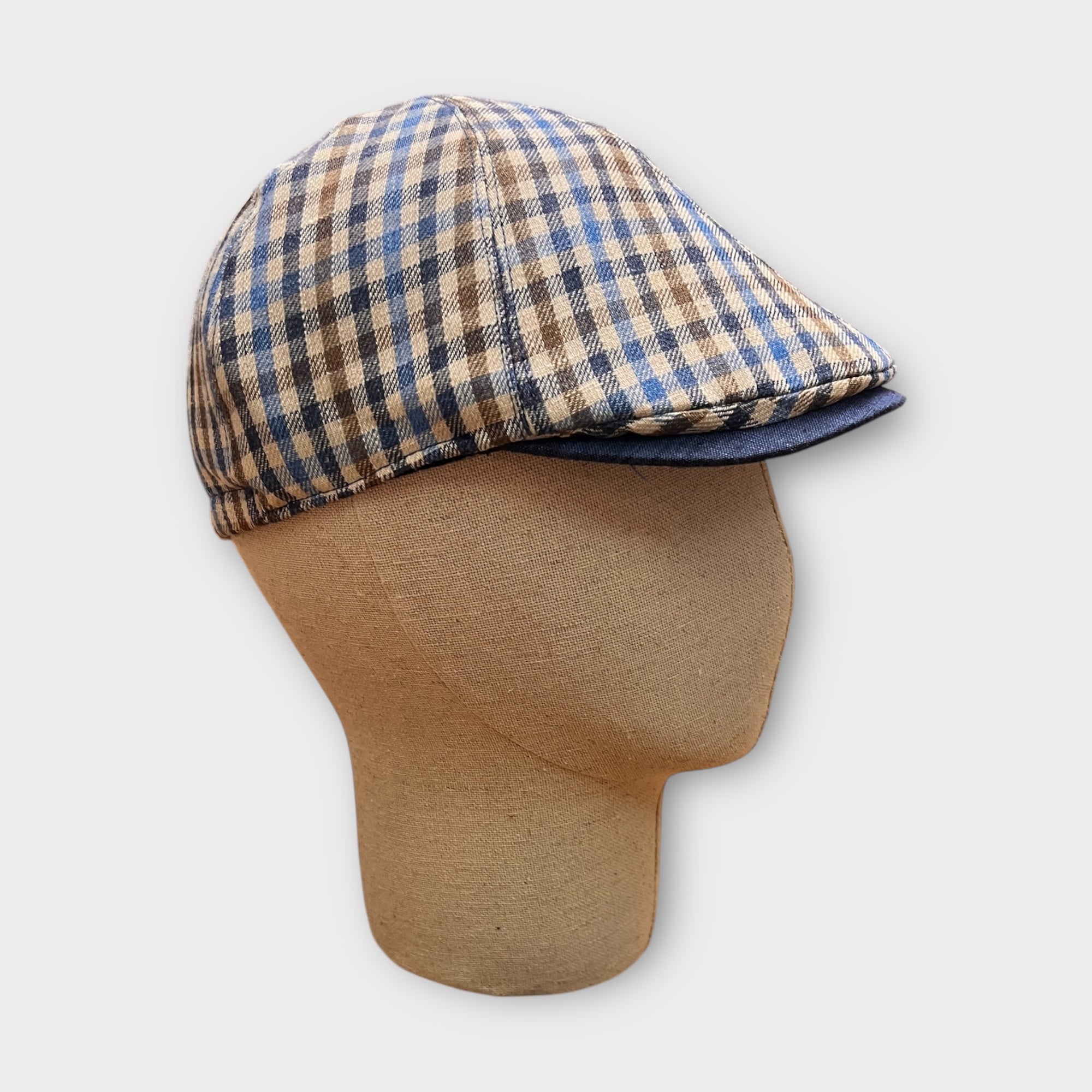 Cappello pescatore reversibile impermeabile, unisex, pieghevole e artigianale. Un lato check beige e uno blu. Perfetto per mezze stagioni e inverno. Made in Italy.