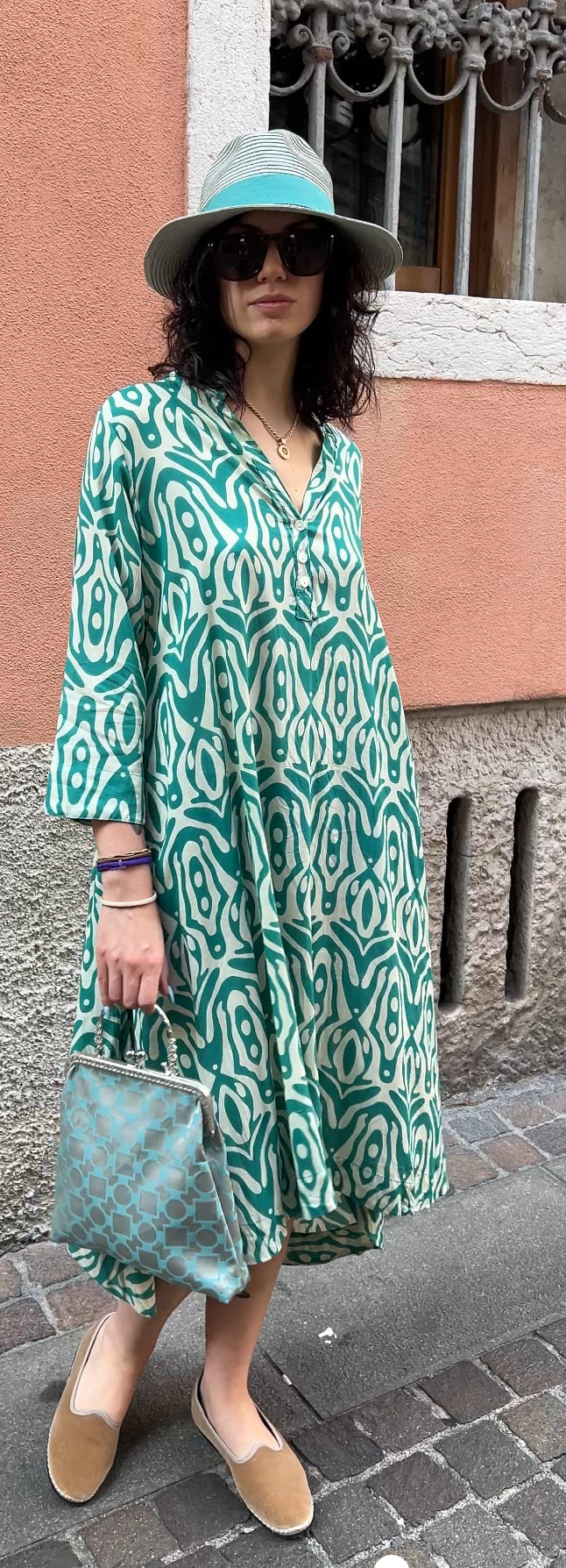 Sciarpa in pura seta Made in Italy con elegante fantasia a rombi, morbidissima e luminosa. Perfetta per look formali o casual-chic, raffinata e leggera. Misura 33×180 cm.