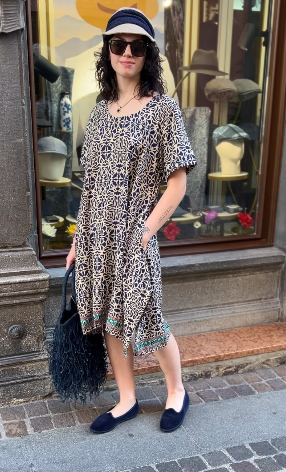 Cappello Pescatore Reversibile Blu unito/Beige Check