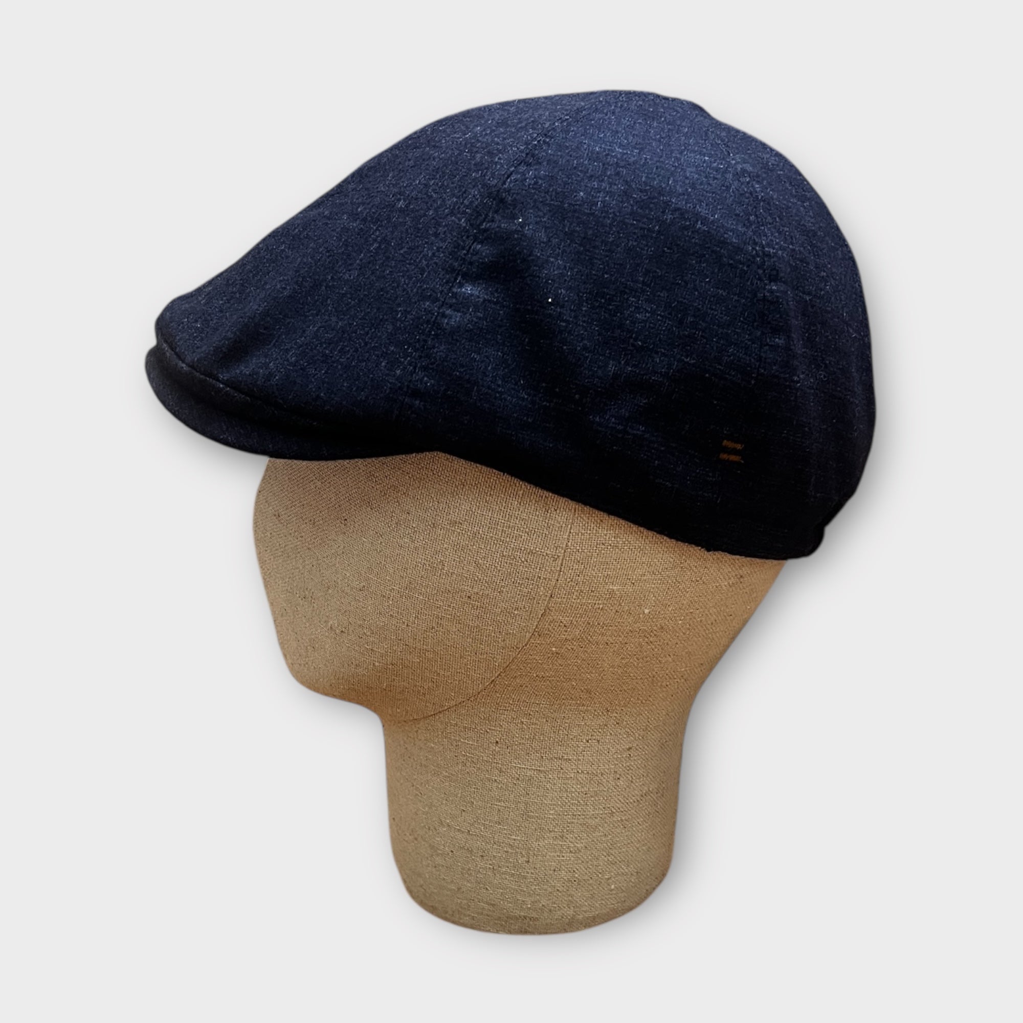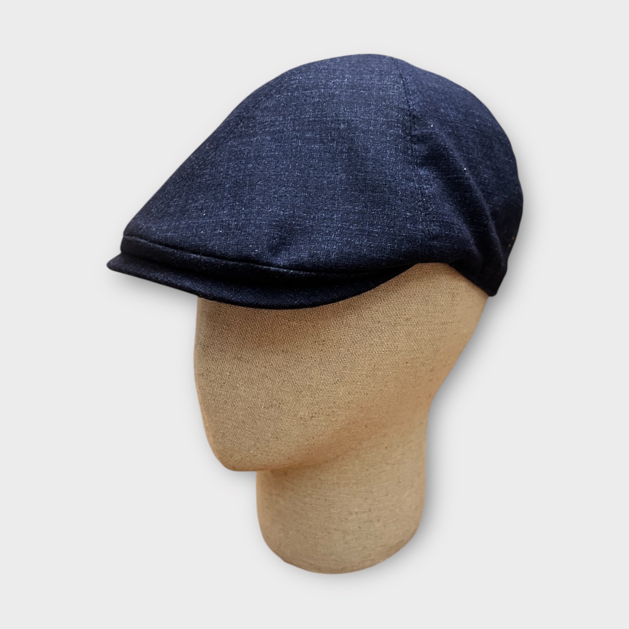 Coppola duck in cotone cerato antipioggia, fodera in lana per calore e comfort, elastico sulla nuca e qualità artigianale. Blu, ideale per mezze stagioni e inverno. Made in Italy.