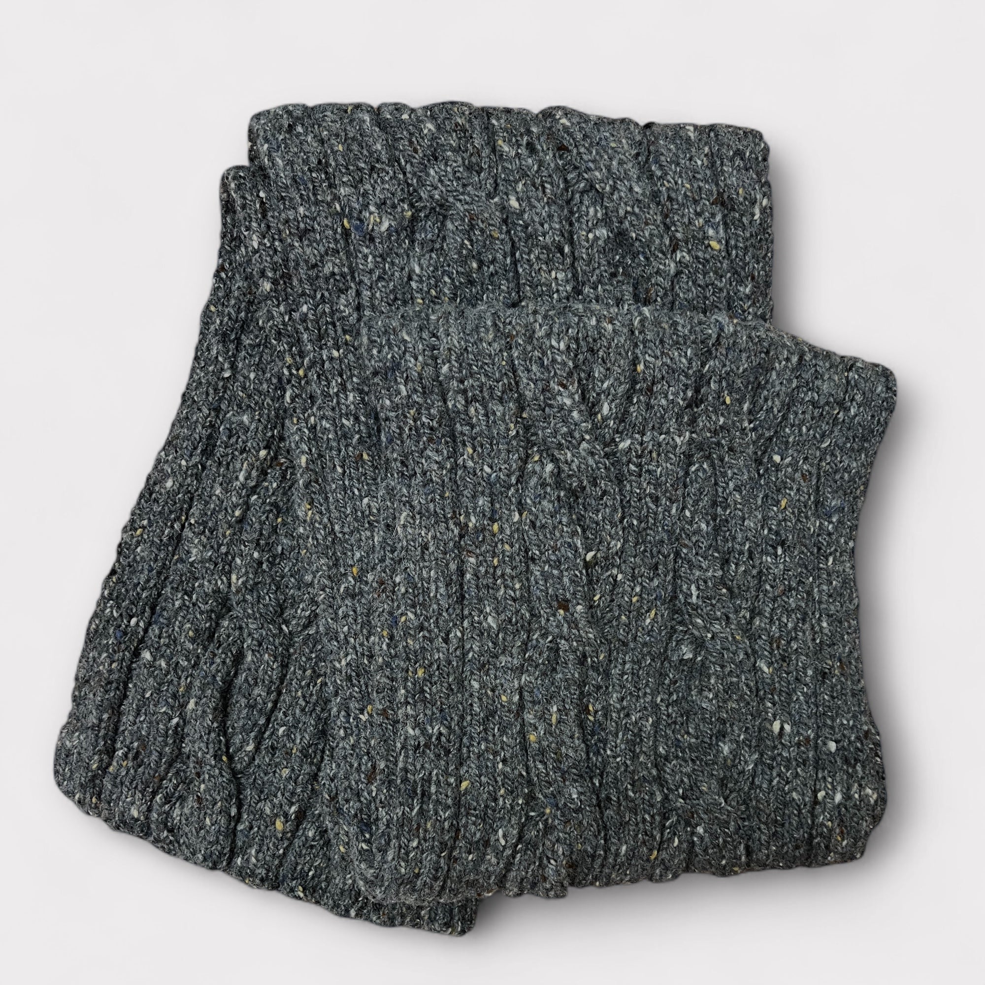Sciarpa in pura lana Aran irlandese, calda e avvolgente, lavorata a coste con filato melange. Realizzata in Irlanda da Fisherman Out Of Ireland.