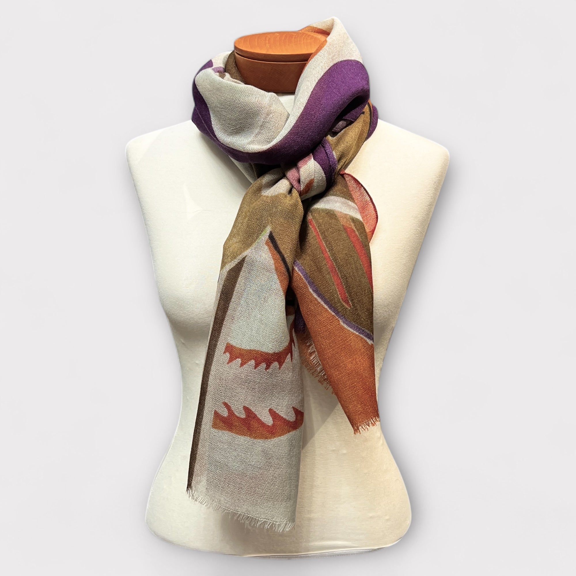 Sciarpa in pura lana leggera, con stampa floreale stilizzata. Morbida e calda, misura 55 x 190 cm. Perfetta per l’autunno e l’inverno, anche sotto al capospalla. Made in Italy – Barbieri.