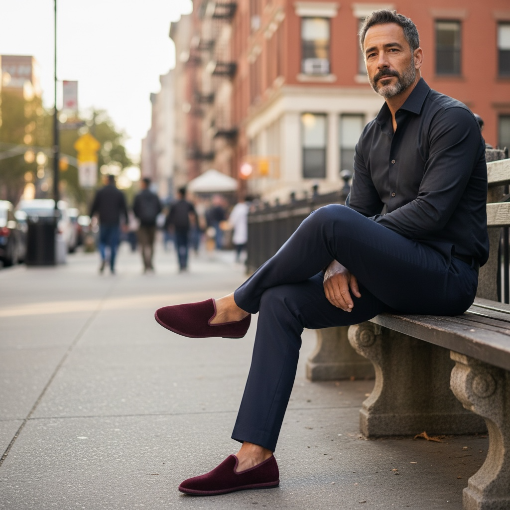 Friulane originali da uomo in velluto di cotone, fatte a mano in Italia. Suola in gomma riciclata, fodera in cotone e vestibilità che si adatta al piede. Eleganza artigianale e comfort quotidiano.