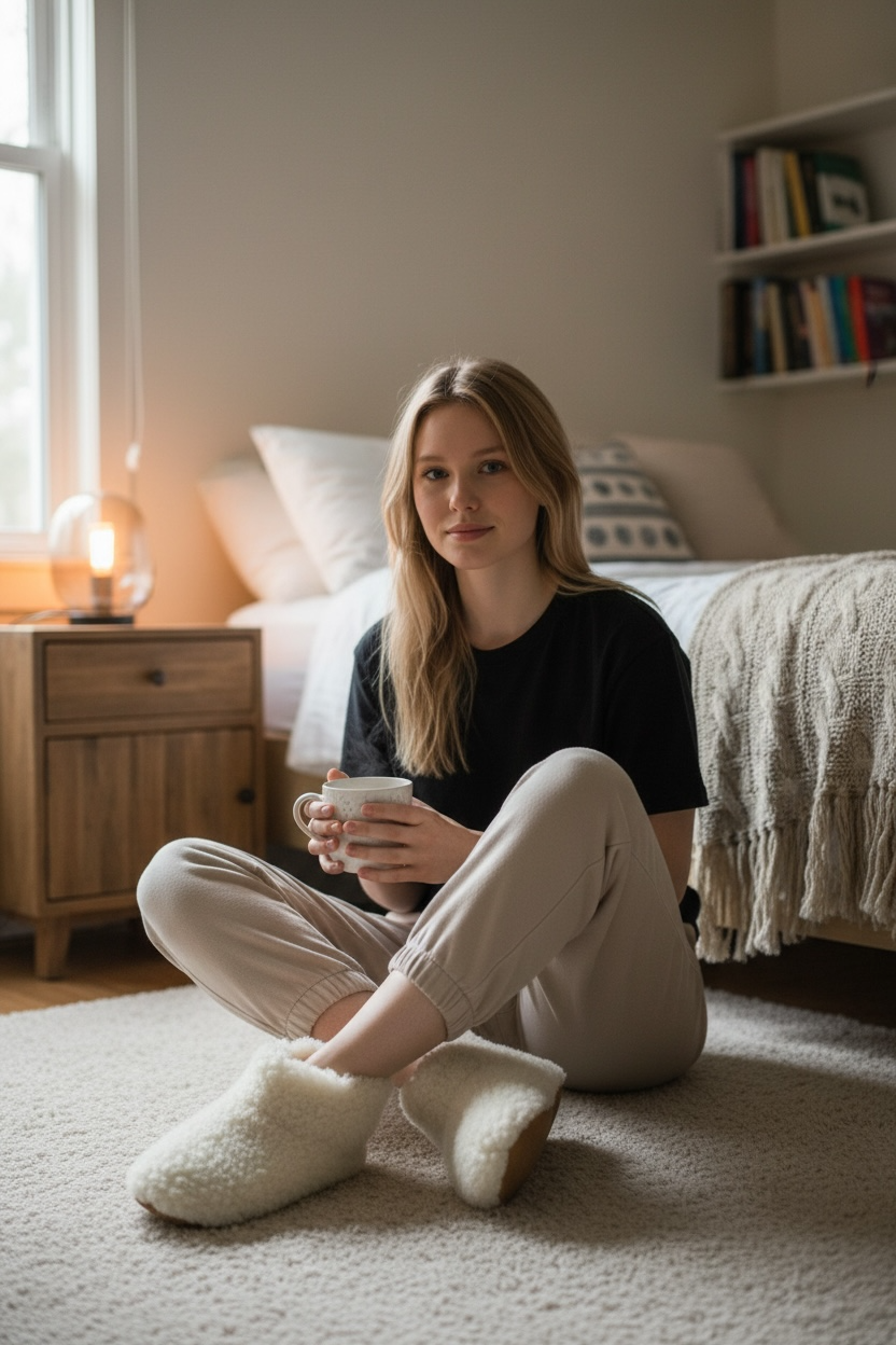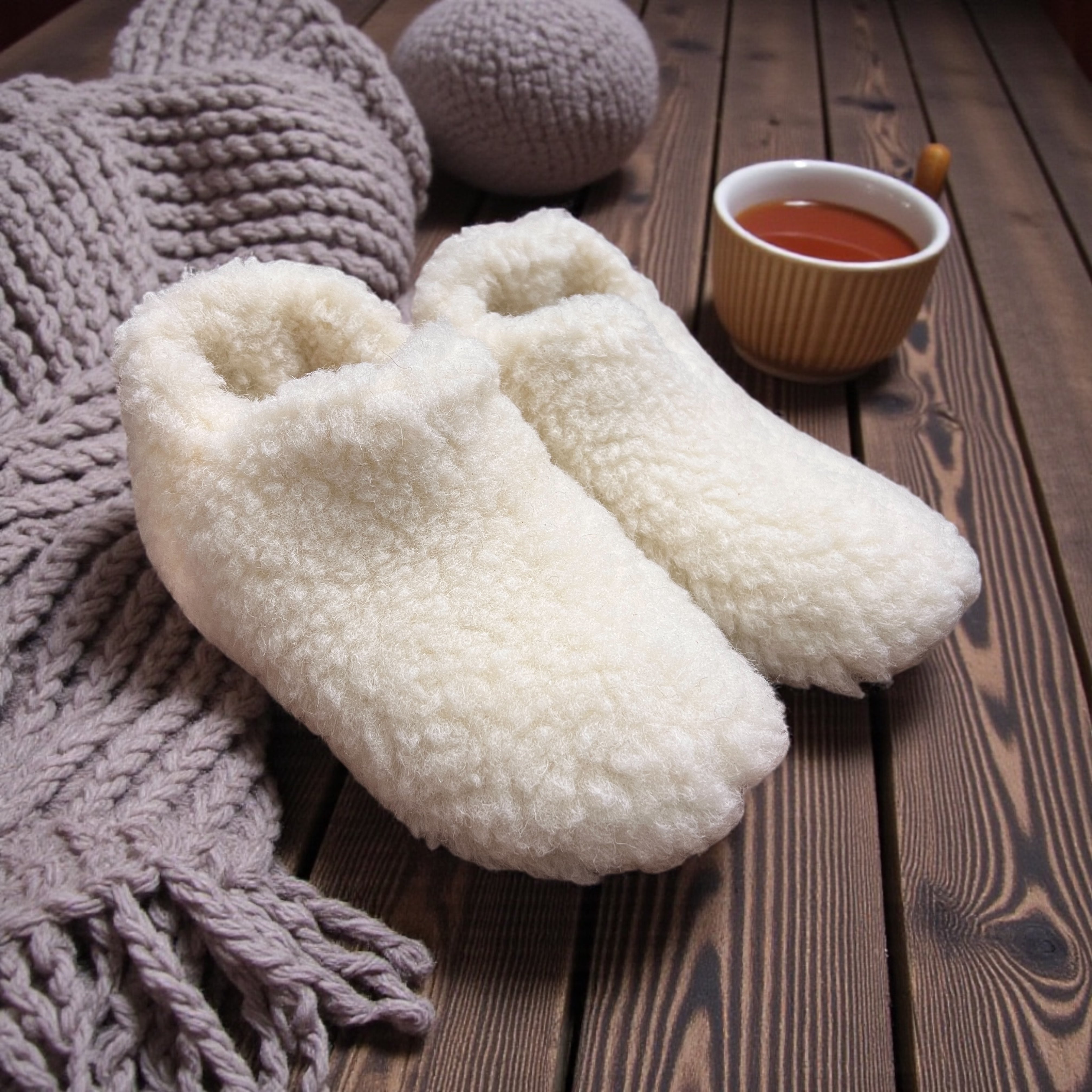 Pantofole in pura lana di pecora con interno in vera pelliccia e suola in pelle scamosciata. Morbide, calde e traspiranti, regolano la temperatura senza surriscaldare. Qualità artigianale Gena.
