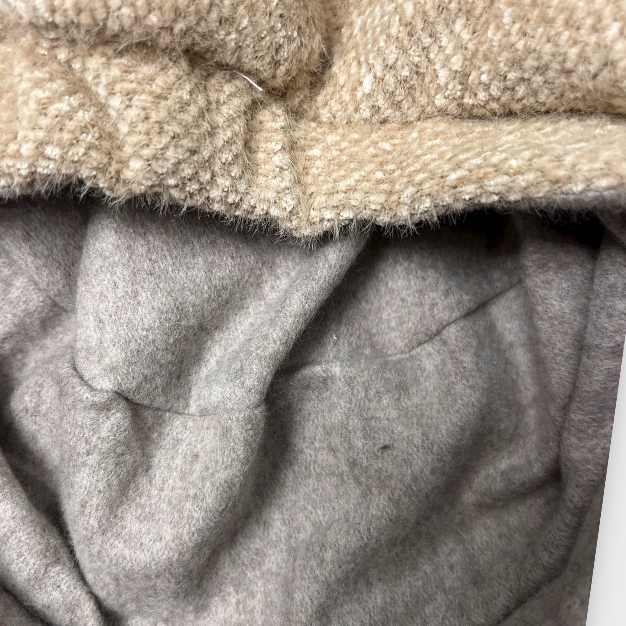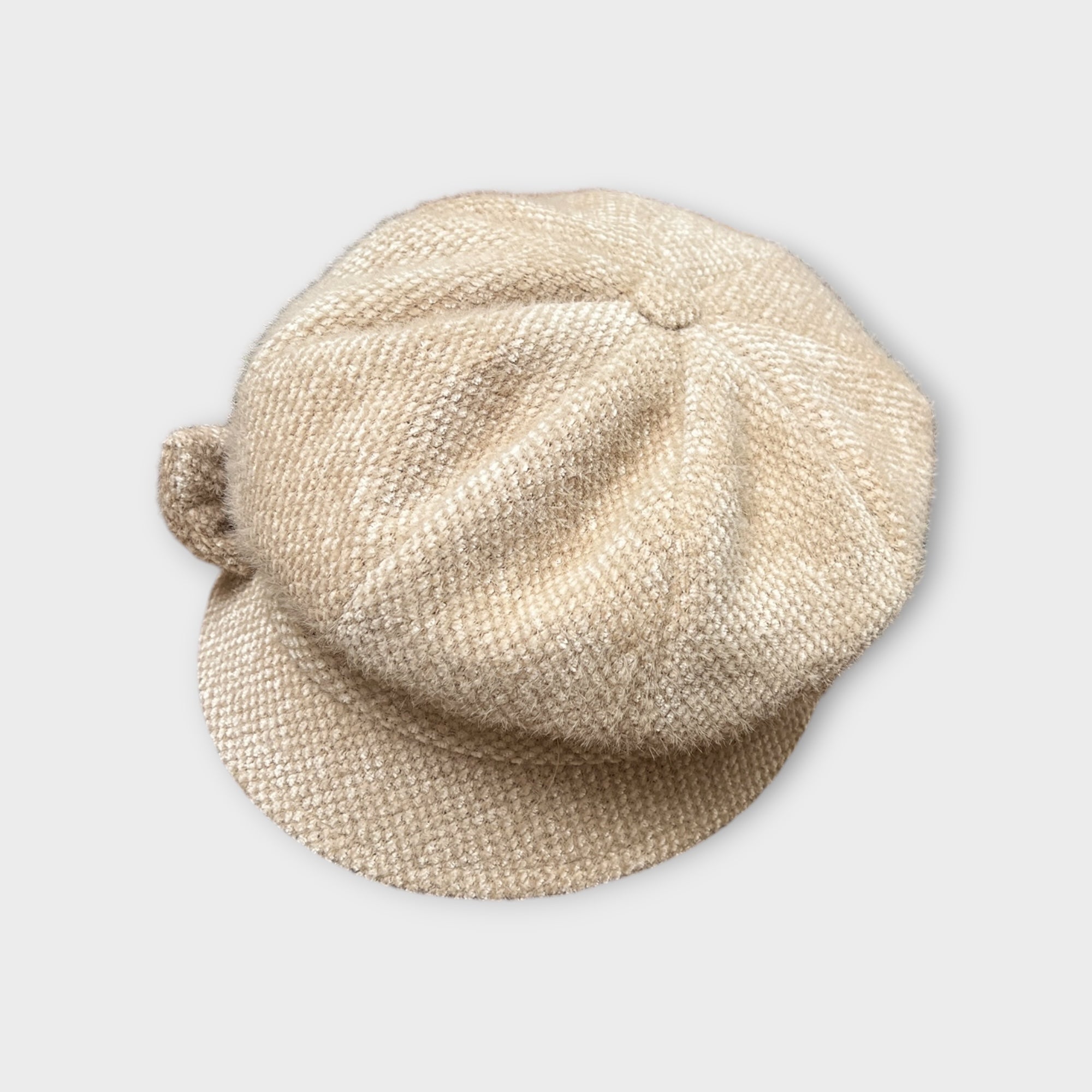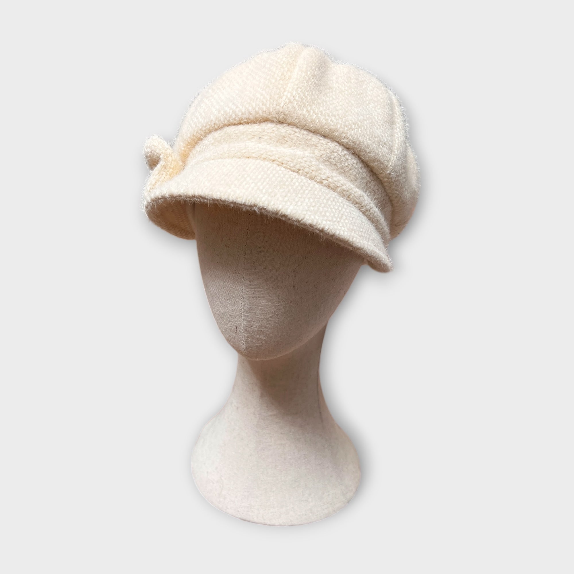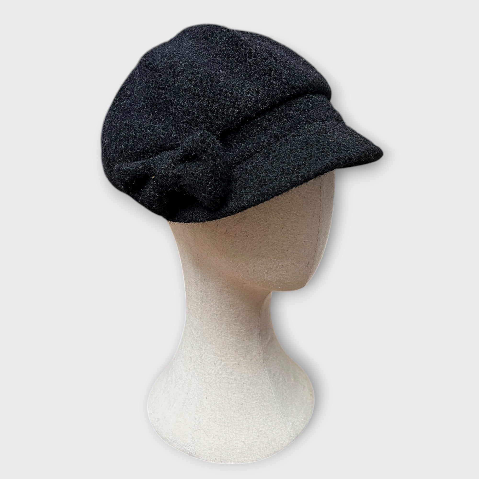 Monello con visiera in tessuto morbido senza lana, caldo e foderato in pile. Fiocco laterale, elastico sulla nuca e copertura orecchie. Taglia 55–59. Made in Italy.
