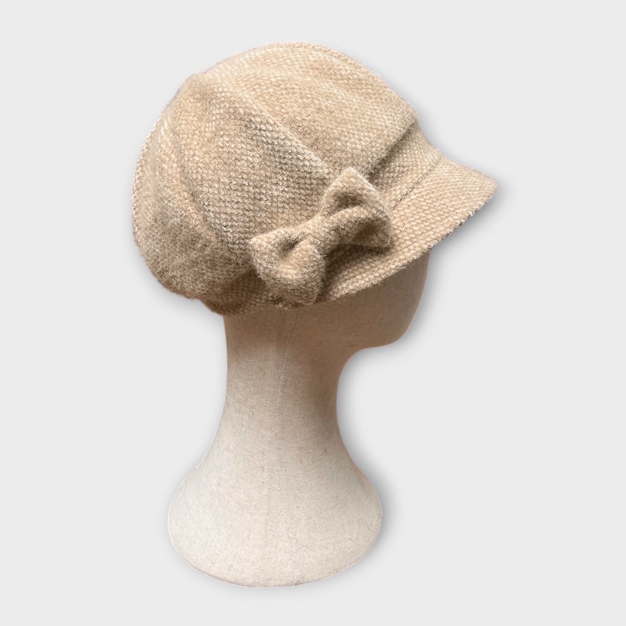 Berretto Donna In Pile Senza Lana Con Visiera E Fiocco