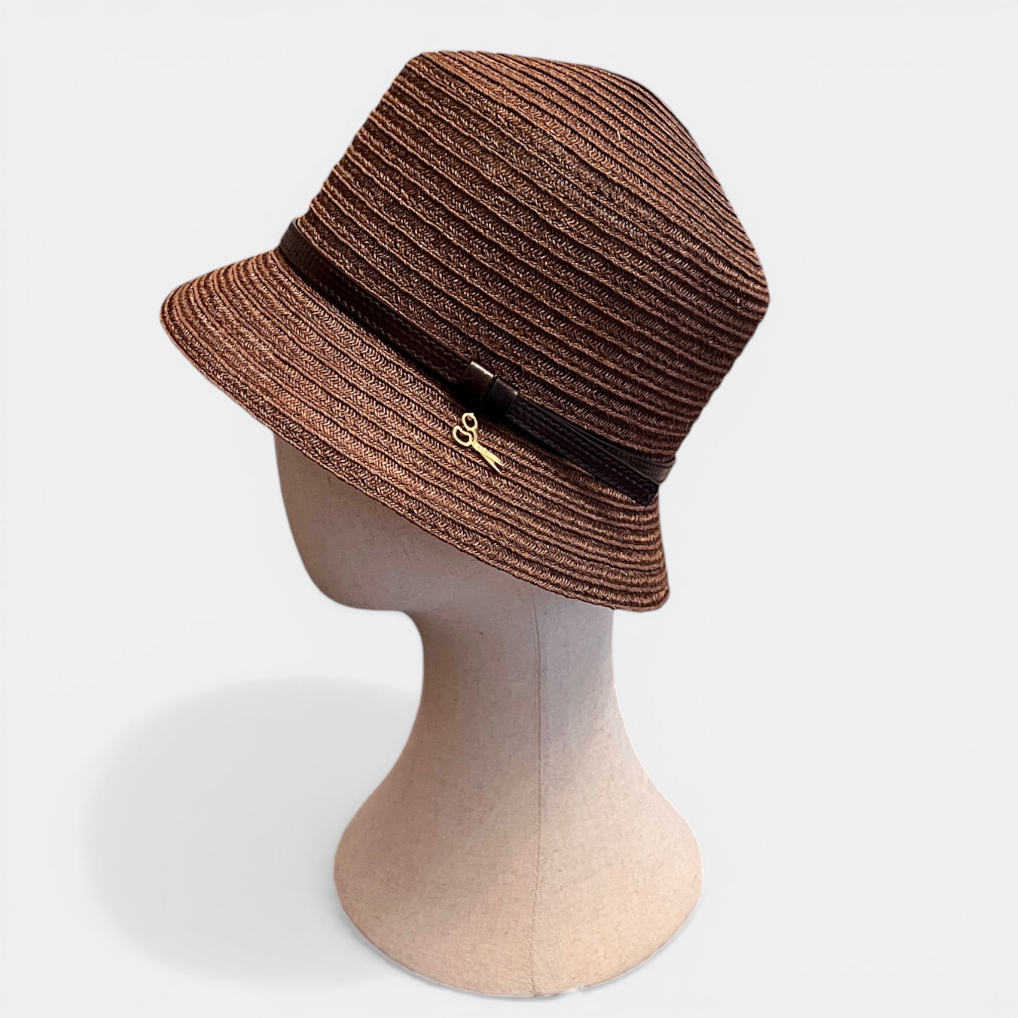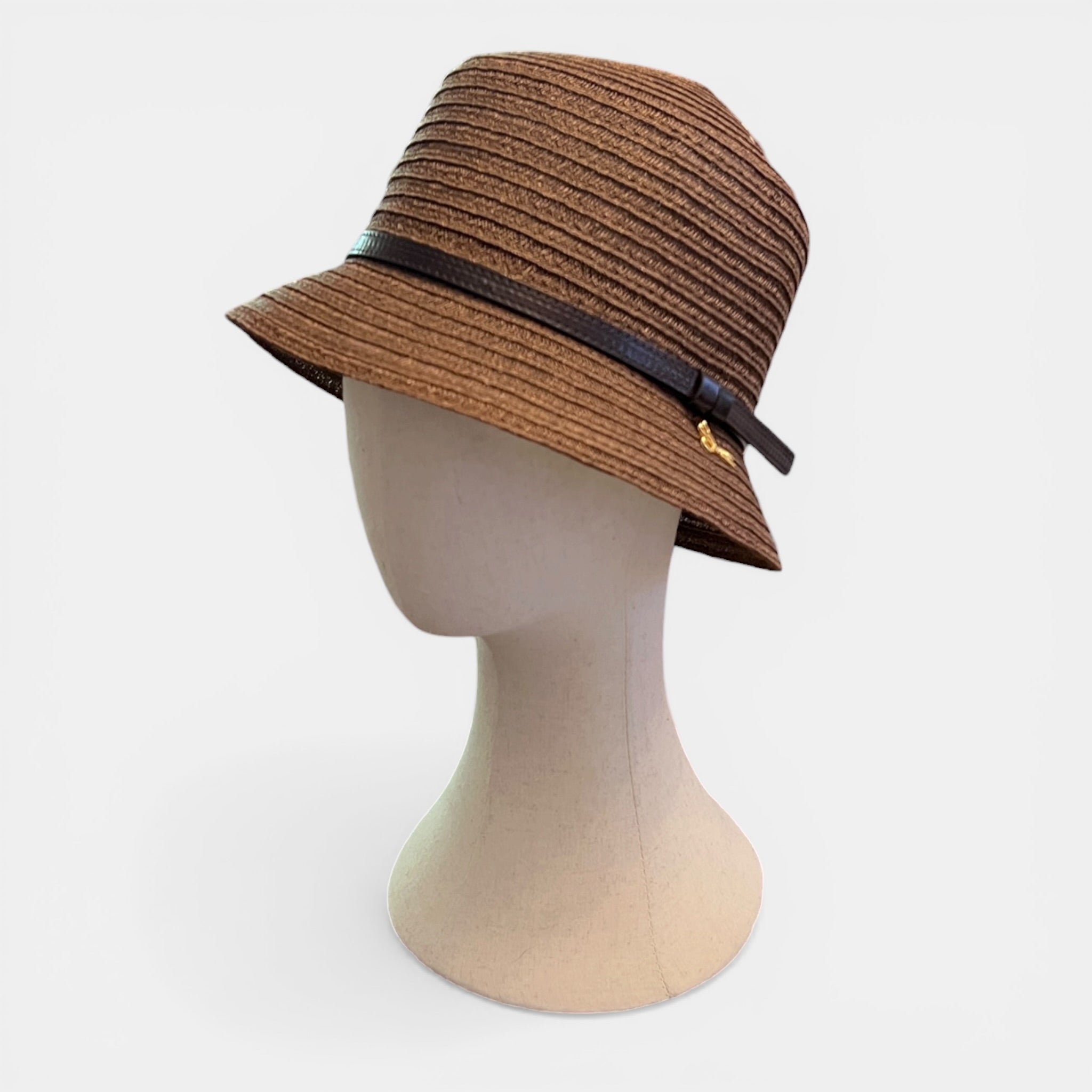 Cloche in abaca naturale, leggera e traspirante con cinturino in pelle. Design elegante e arrotolabile, perfetta per l’estate e i viaggi.