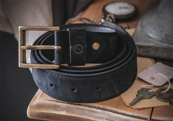 Cintura artigianale in pelle nabck con fibbia in metallo, larghezza 3,5 cm e lunghezza regolabile, elegante e resistente per uso quotidiano.