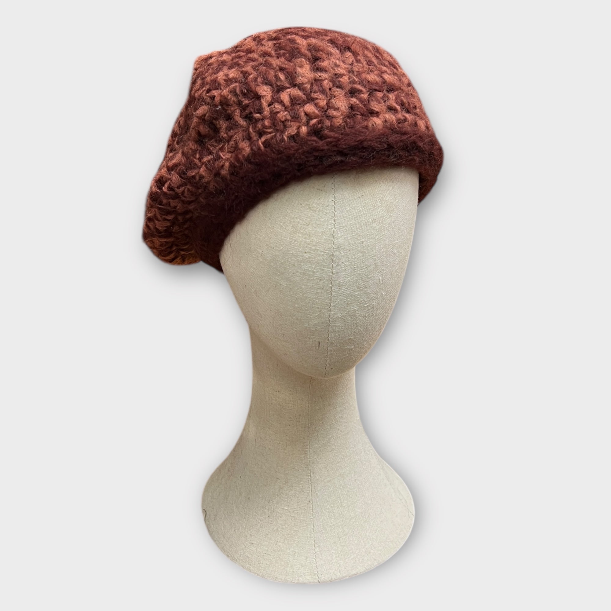Basco in lana fatto a mano all’uncinetto, filato bicolor effetto 3D. Morbido e caldo, dona volume alla forma. Made in Italy.