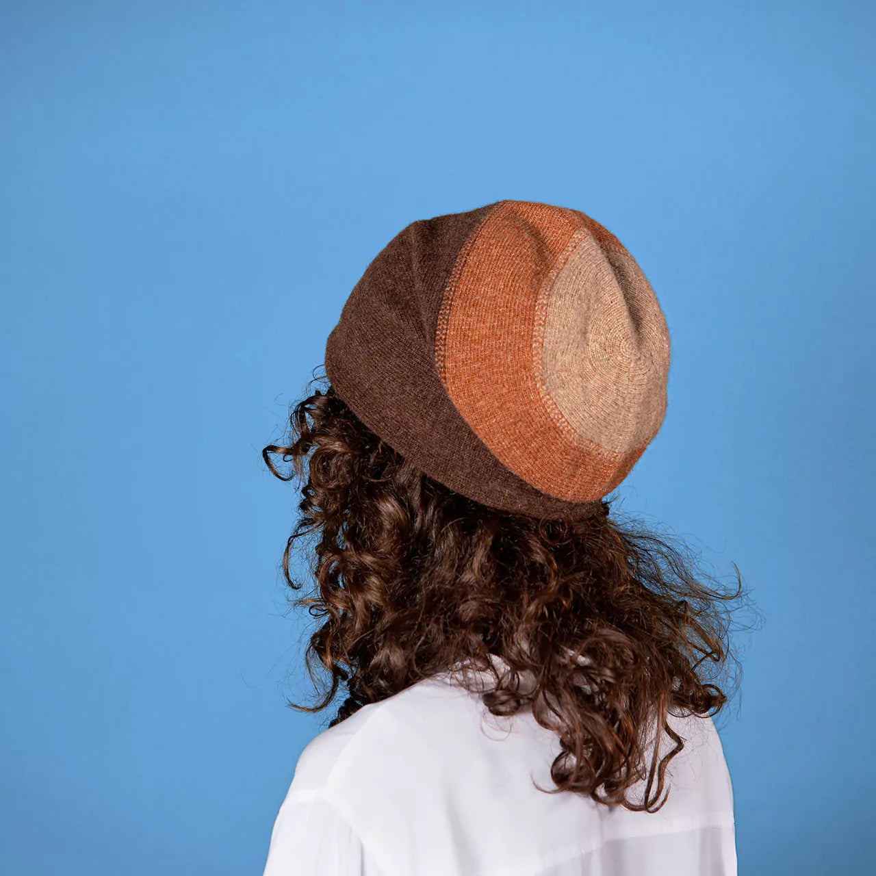 Berretto in lana cotta morbido e flessibile, modellabile e ripiegabile. Unisex, taglia unica, indossabile cascante o con risvolto.