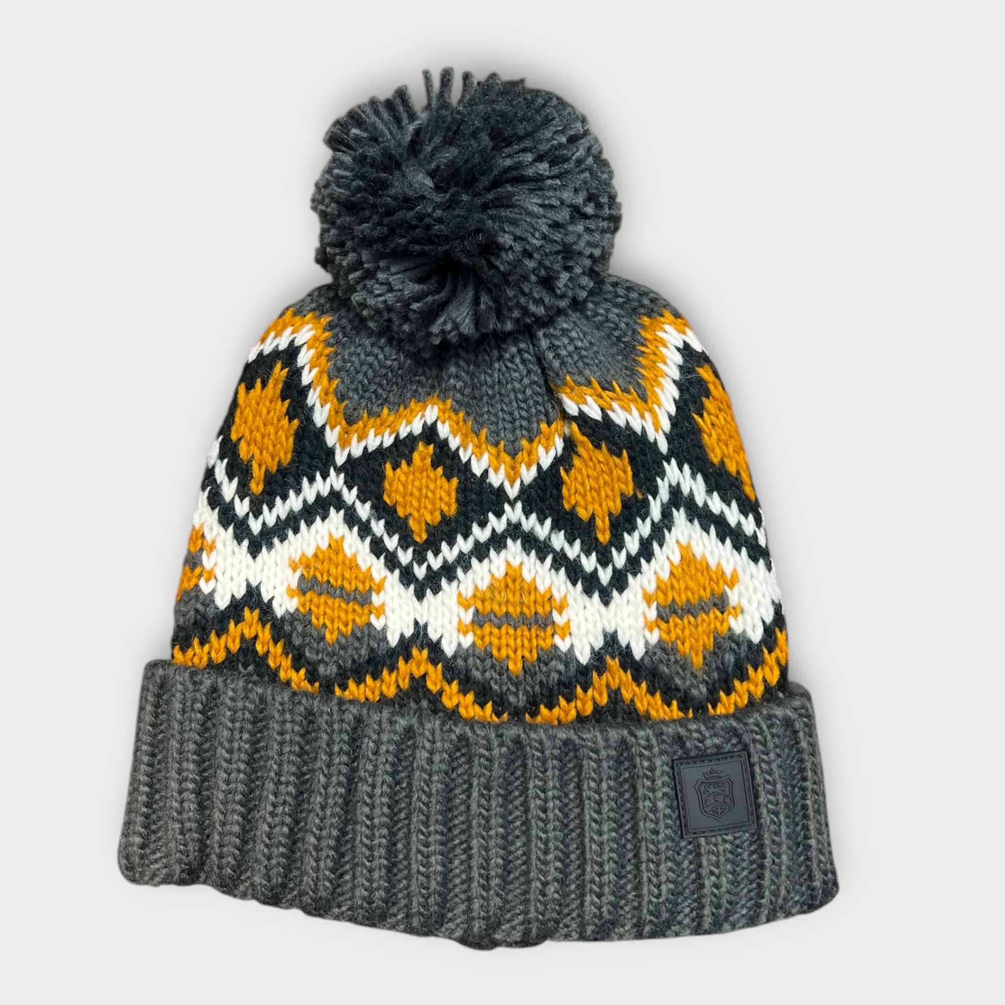 Berretto unisex Failsworth in morbida maglia con motivo geometrico e pon pon. Caldo, leggero e non pizzica. Vestibilità comoda ed elasticizzata in 100% poliestere.