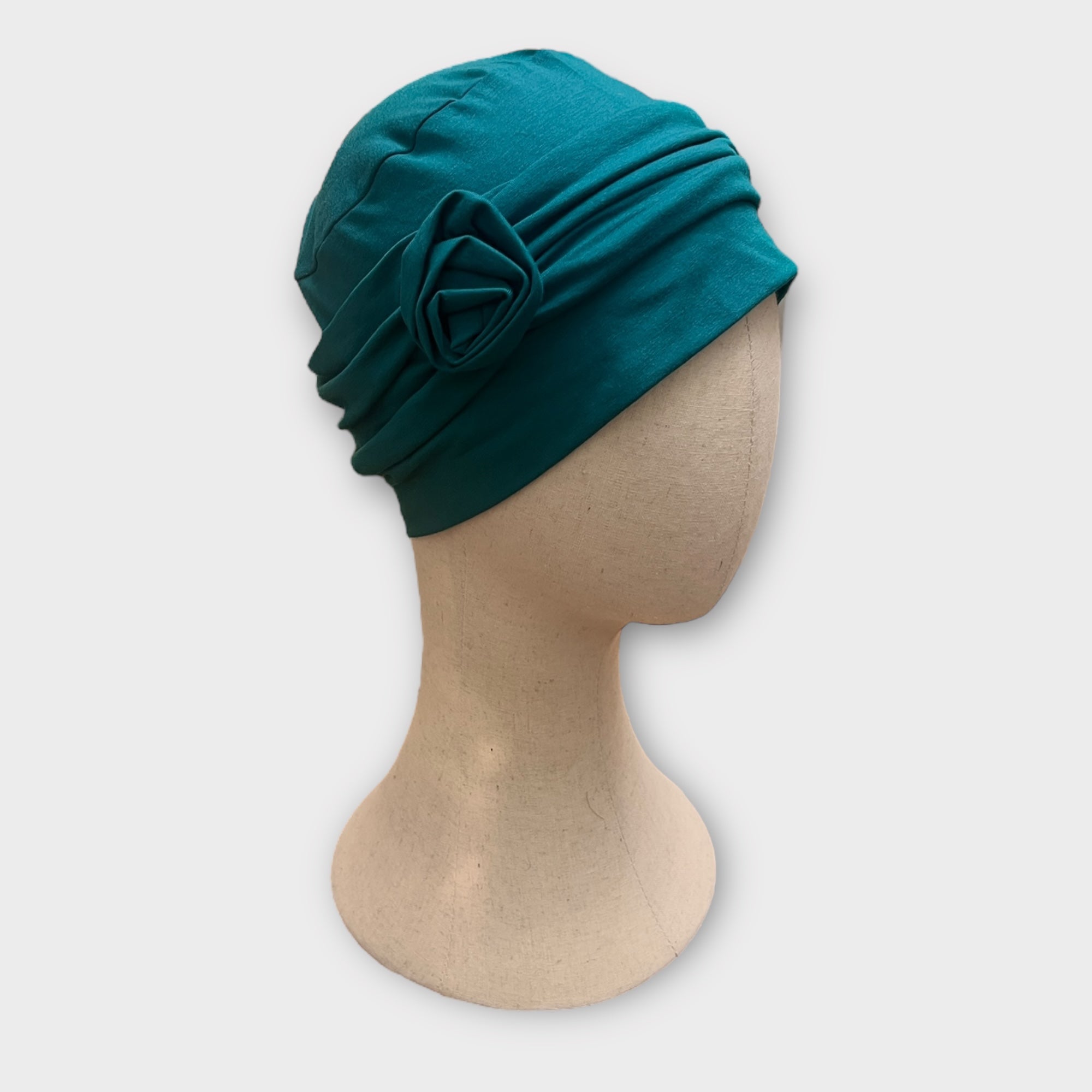 Calottina in jersey di cotone elasticizzato, morbida e confortevole. Ideale per la mezza stagione o durante terapie. Taglia unica. Made in Italy.