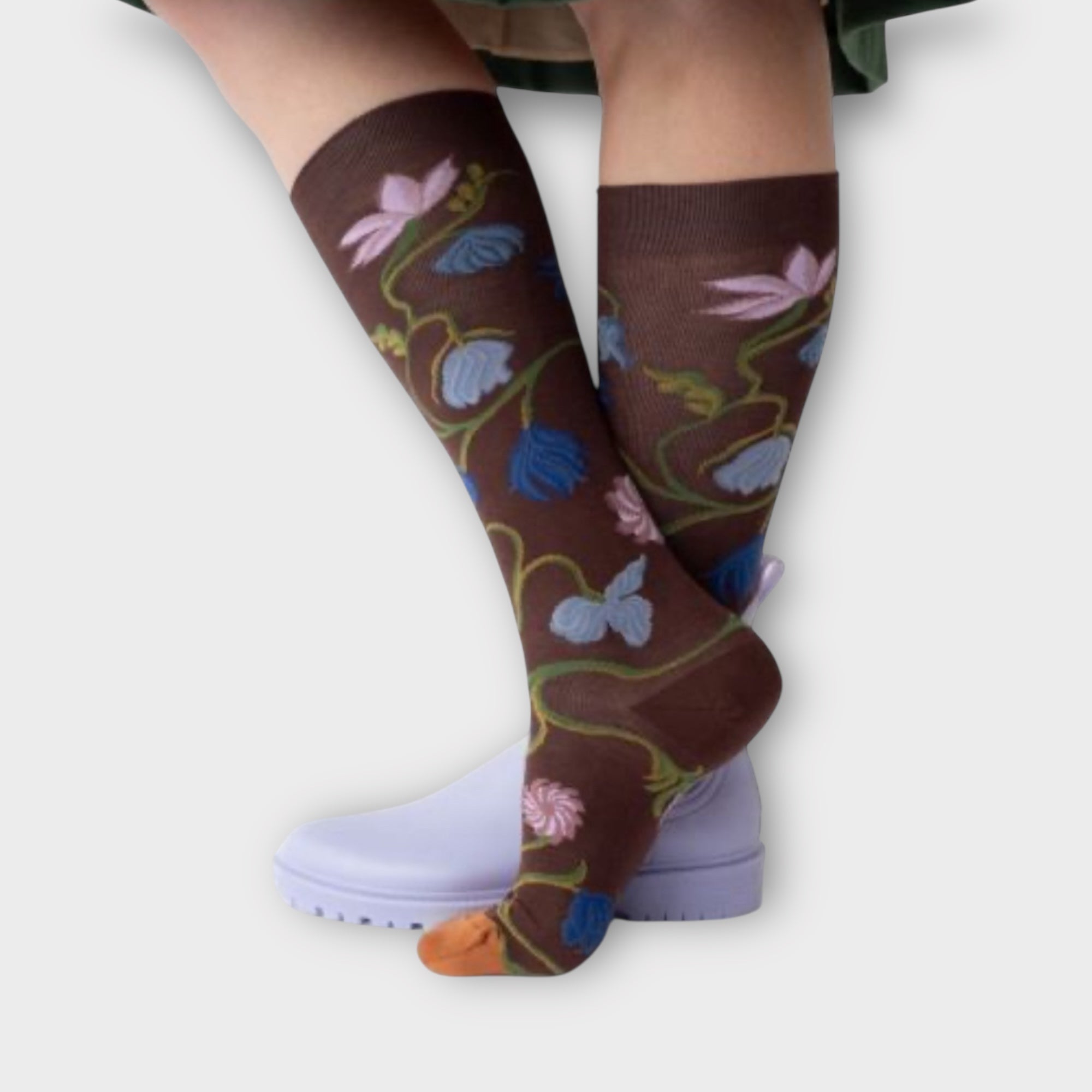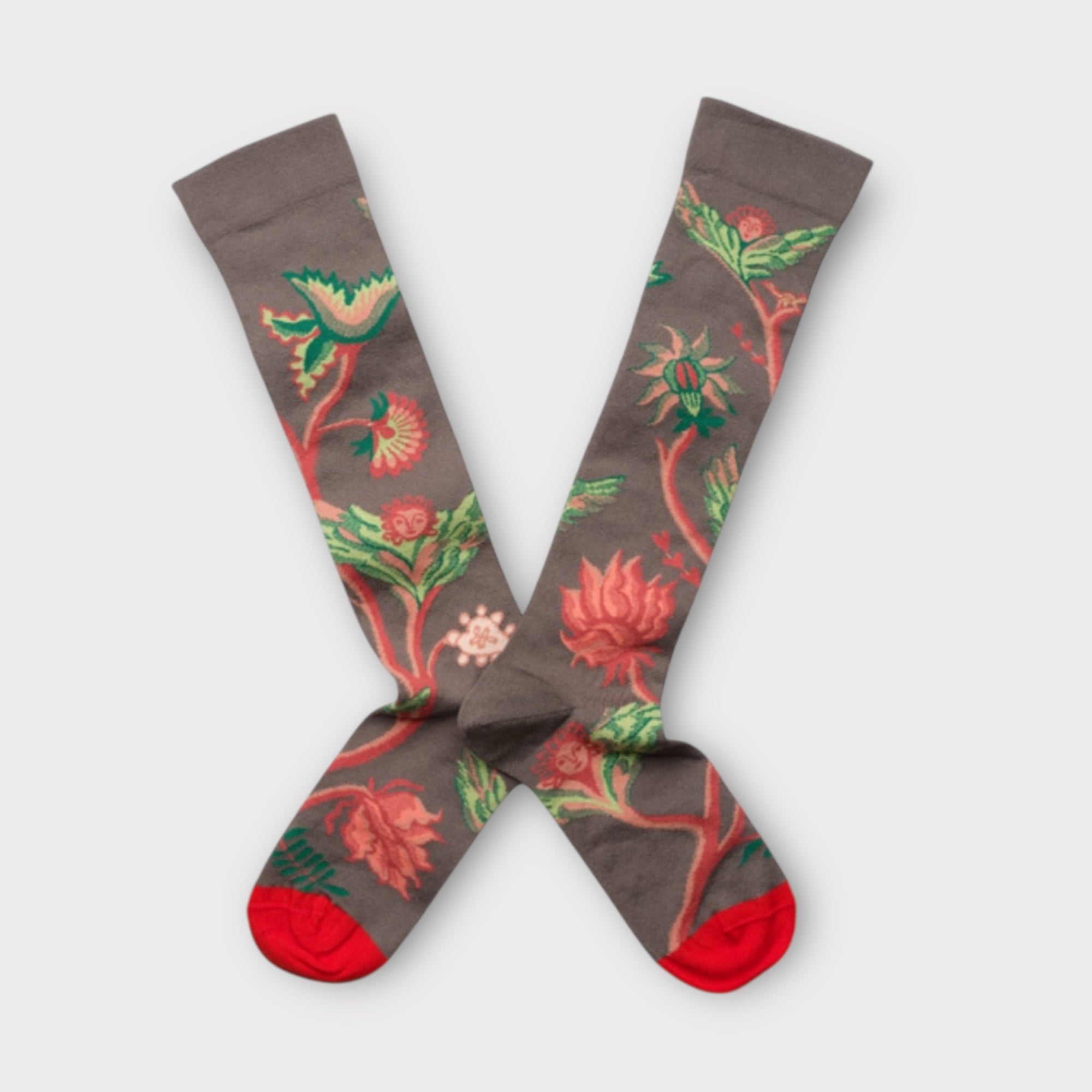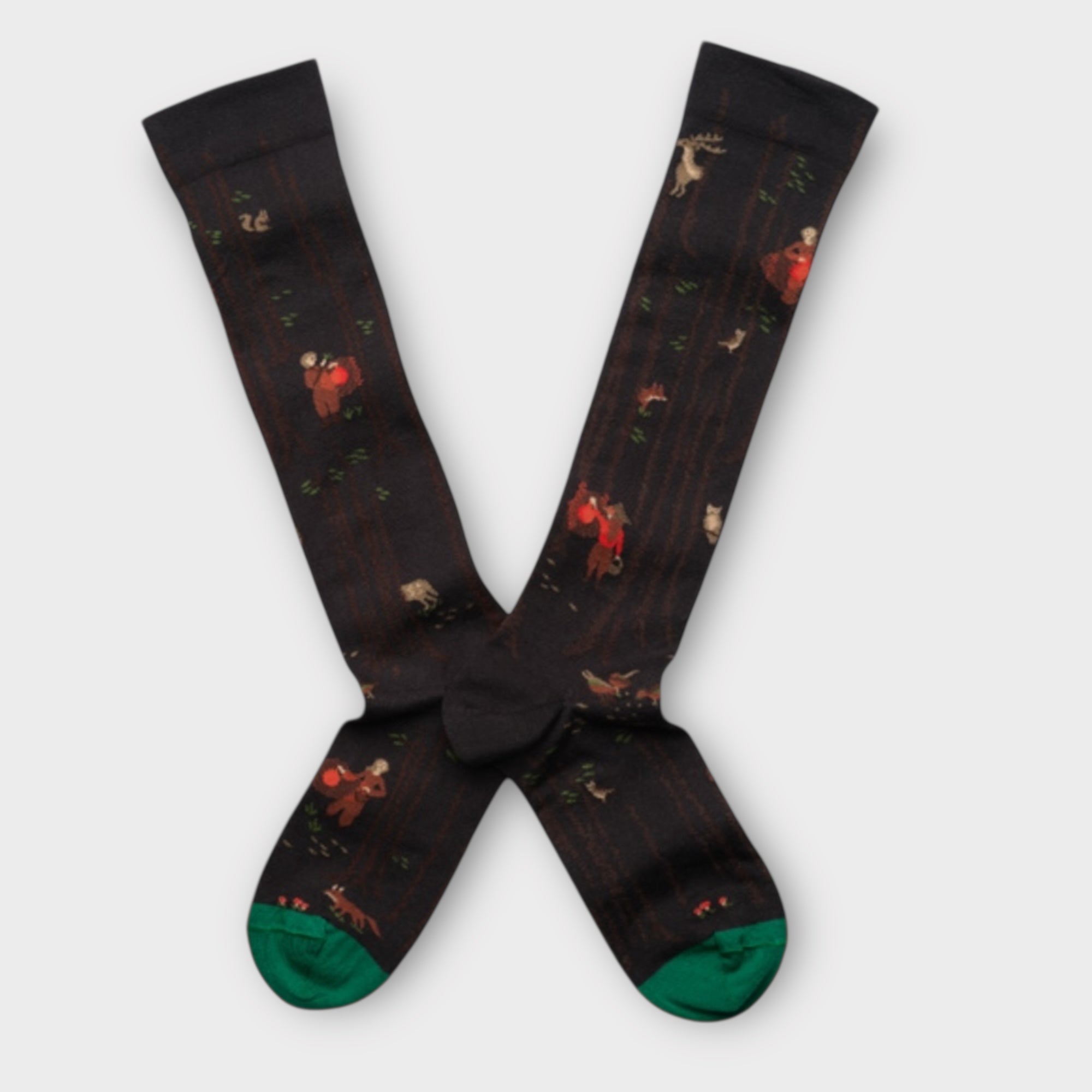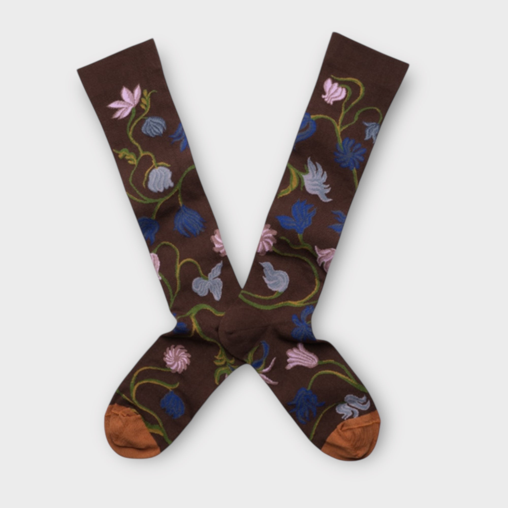 Calze lunghe Bonne Maison in morbido cotone egiziano doppio filo, con fantasie originali e grafiche artistiche. Made in France.