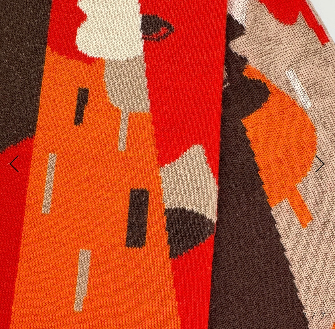 Calzino lungo al ginocchio in cotone e modal, design spaiato (grafica diversa sui due piedi); fine, traspirante e super trendy. Made in Japan.