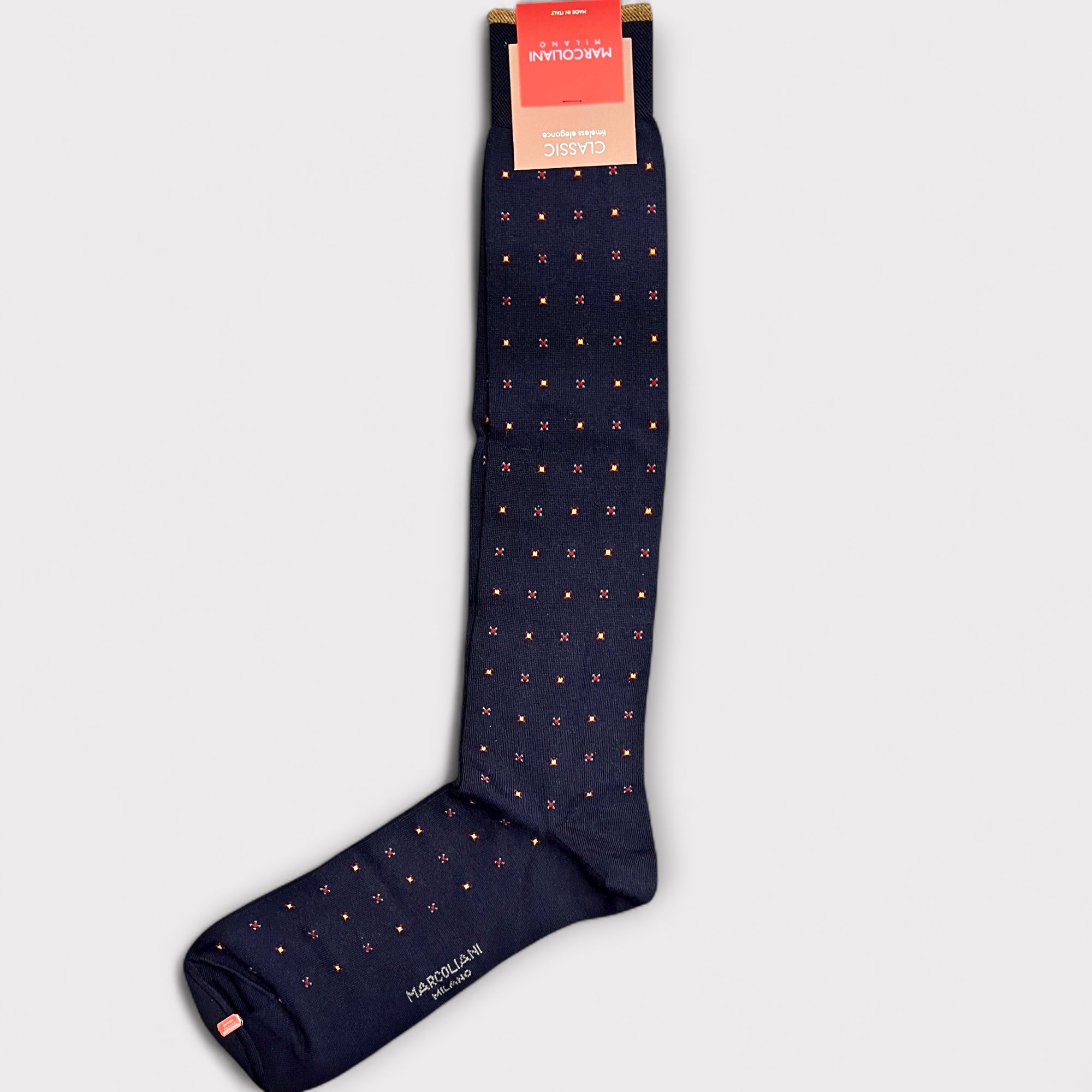 Calzini Uomo Lungo In Lana Vergine Blu Disegno Cravatta
