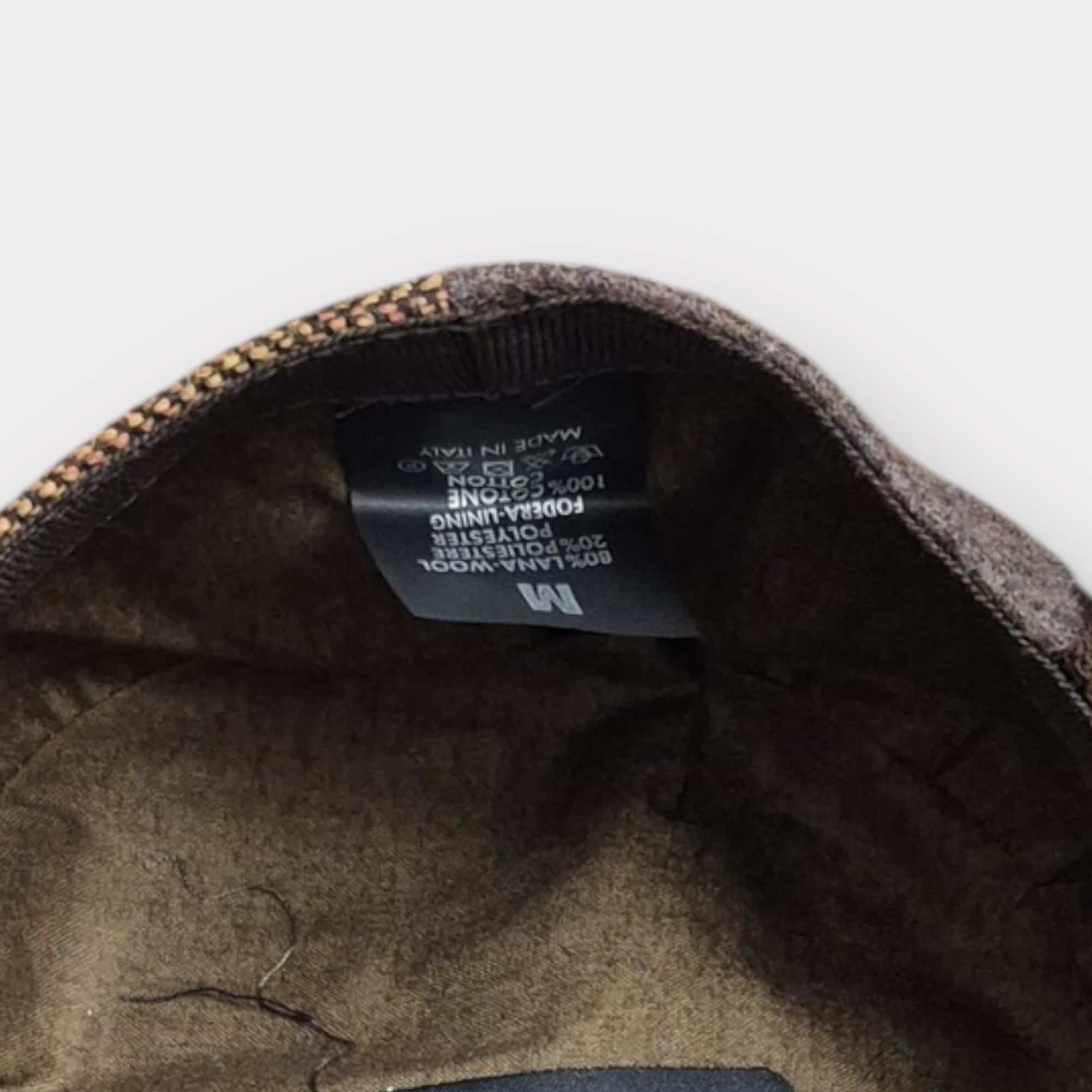 Coppola patchwork in lana con fodera in caldo cotone e visiera in eco pelle. Ogni pezzo è unico. Linea affusolata, elegante e adatta a tutte le tipologie di viso.