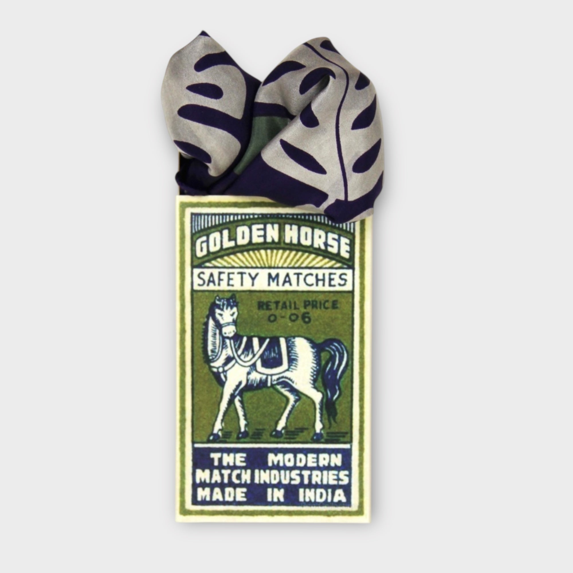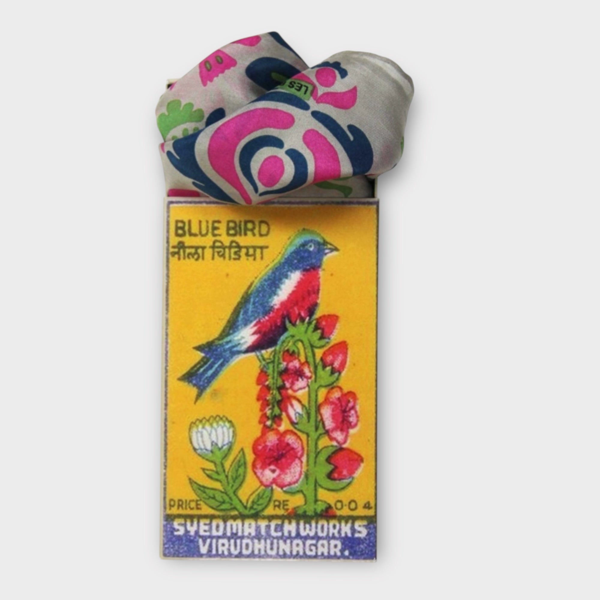 Foulard in pura seta 50x50 cm, con qualità artigianale. Motivo botanico stilizzato, confezionato in scatolina vintage in cartoncino, ideale anche come regalo originale.