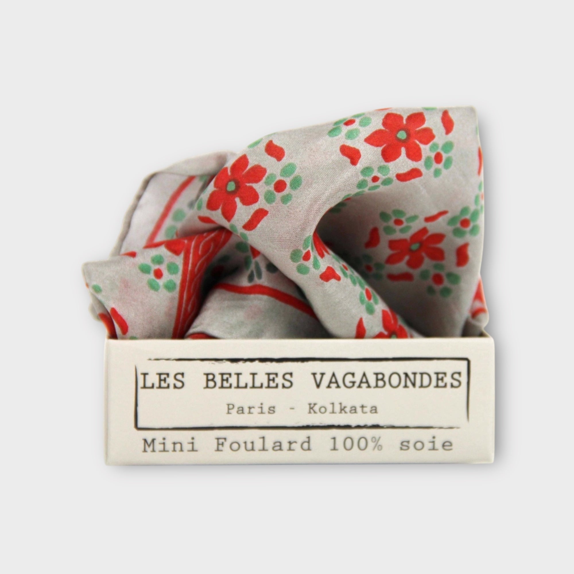 Foulard in pura seta 50x50 cm, con grafica floreale geometrica disponibile in vari colori. Realizzato artigianalmente e presentato in un’elegante scatolina vintage, perfetto anche come regalo.