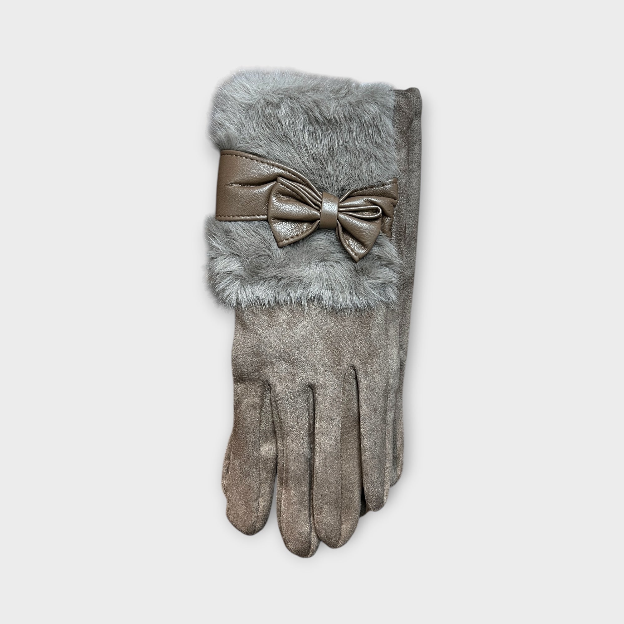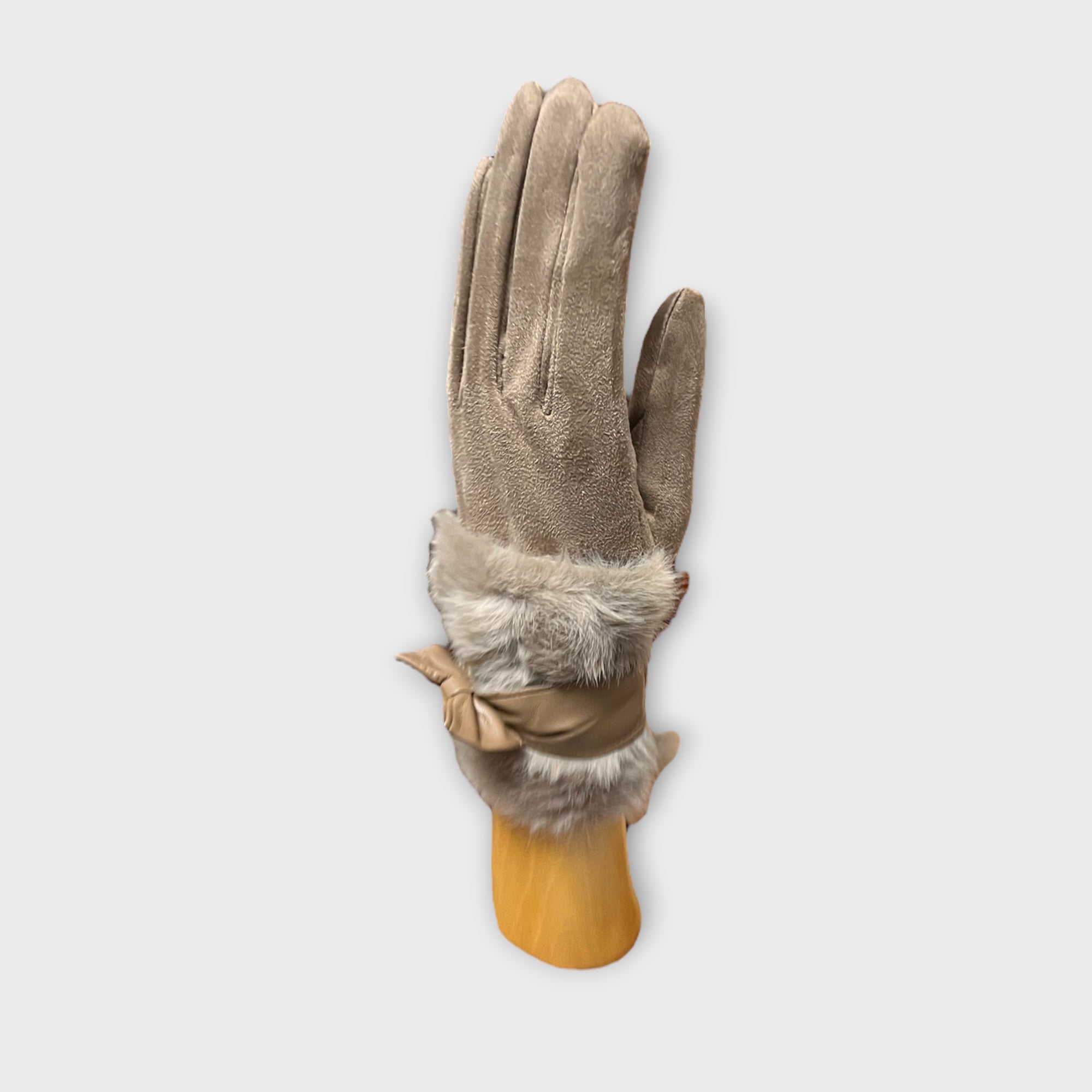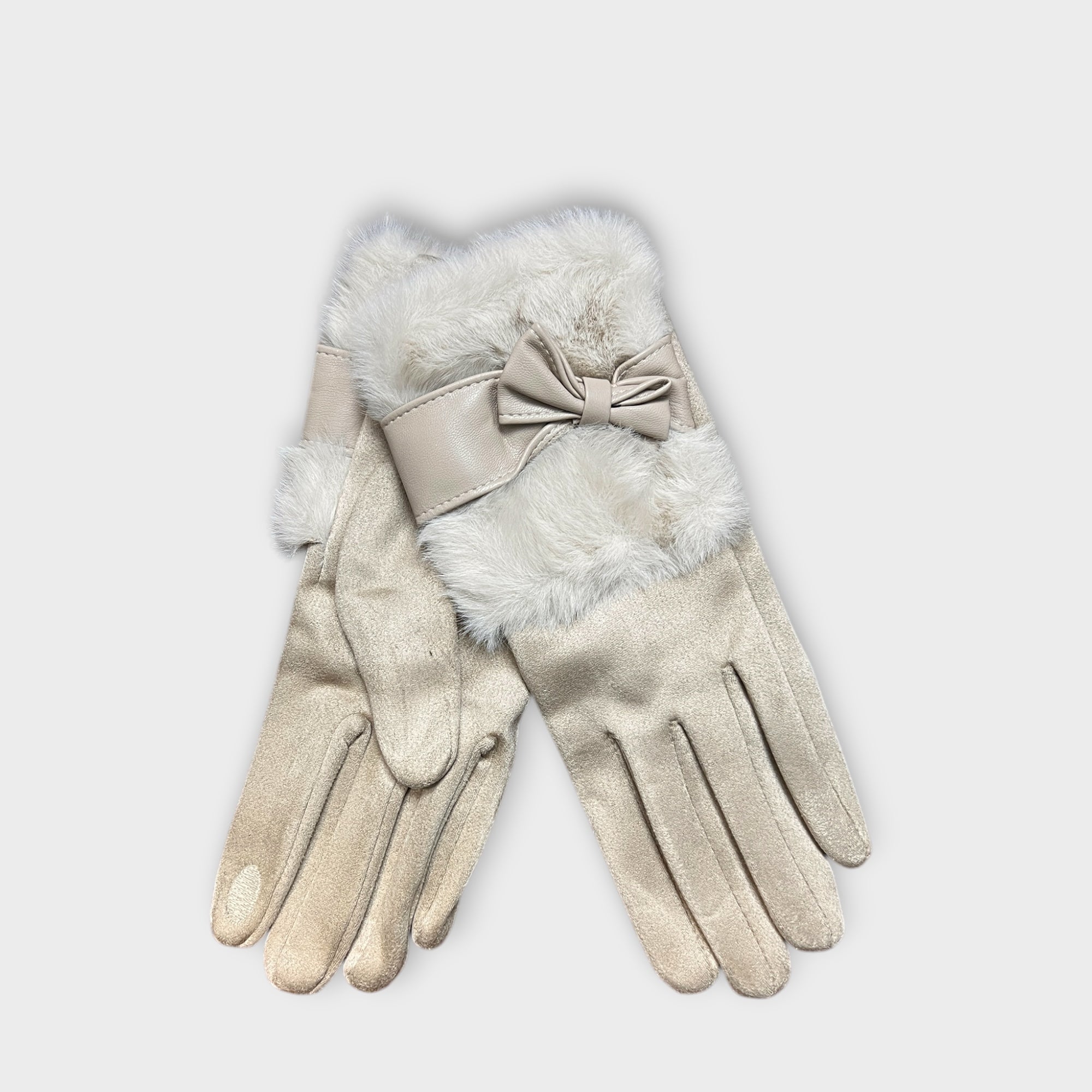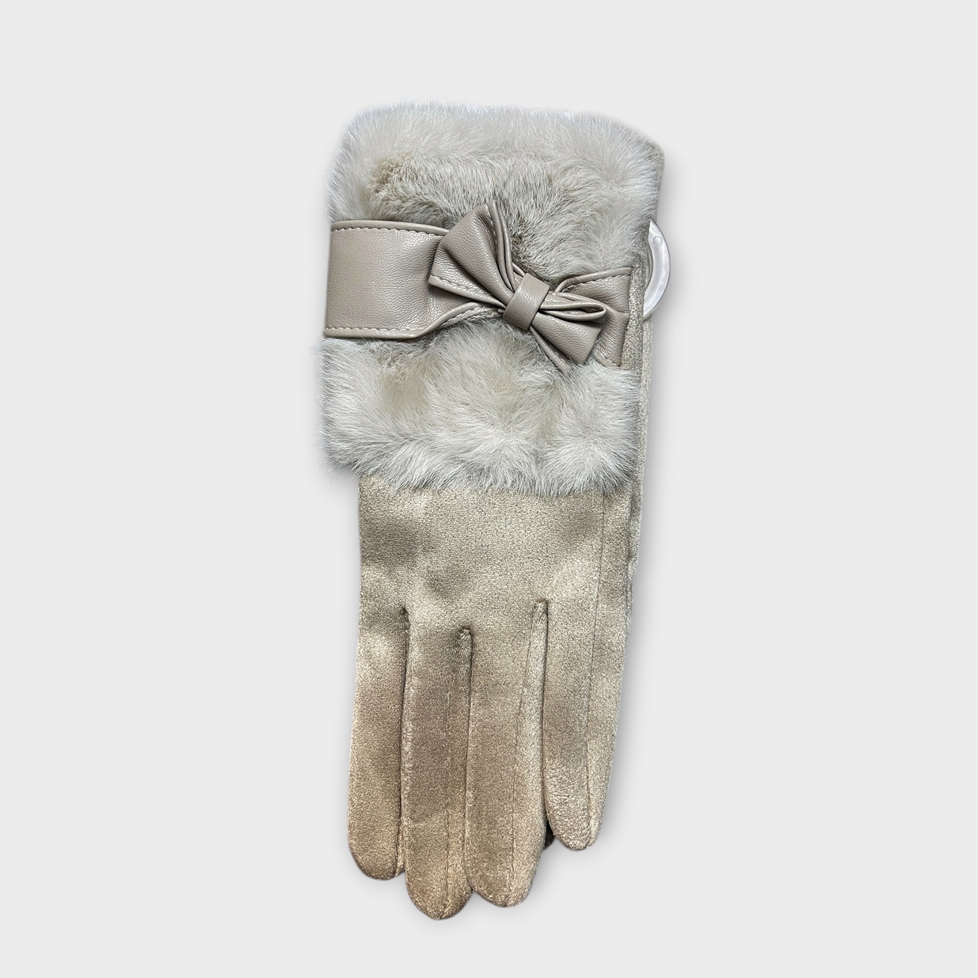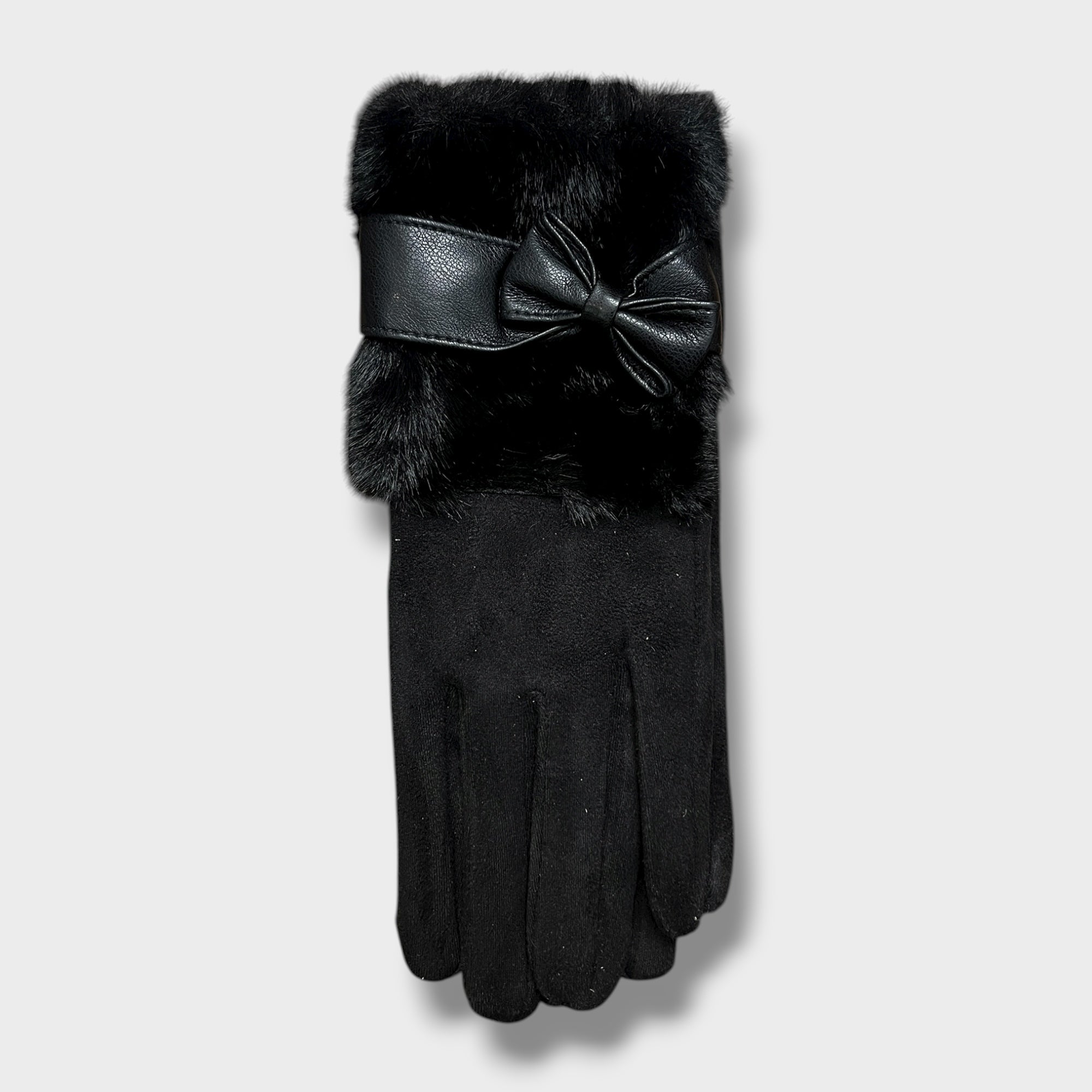 Guanti Donna Touch Screen Con Fiocco e Dettaglio In Pelliccia