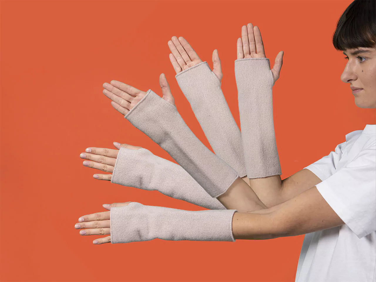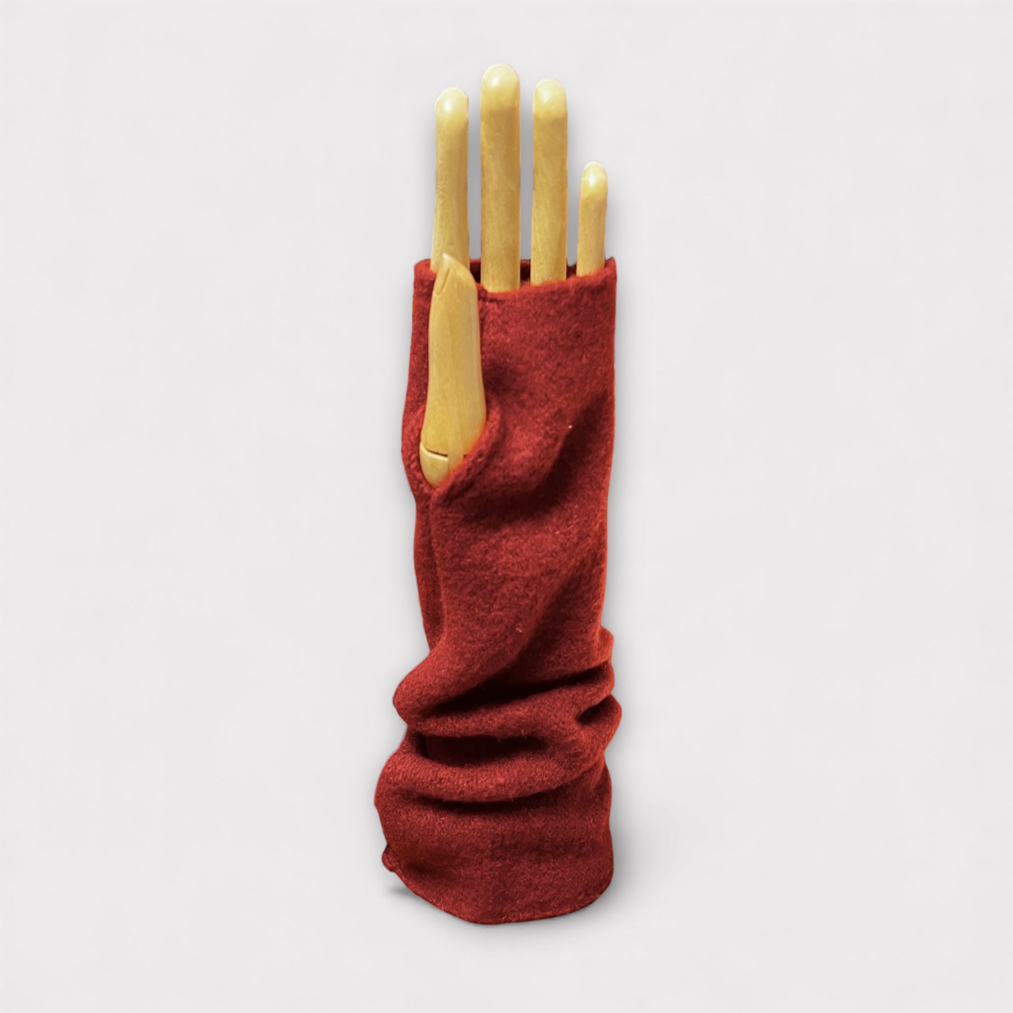 Manicotto tubolare in pura lana merinos, morbidissimo e unisex, con foro per il pollice. Taglia unica, ideale per calore extra con dita libere.