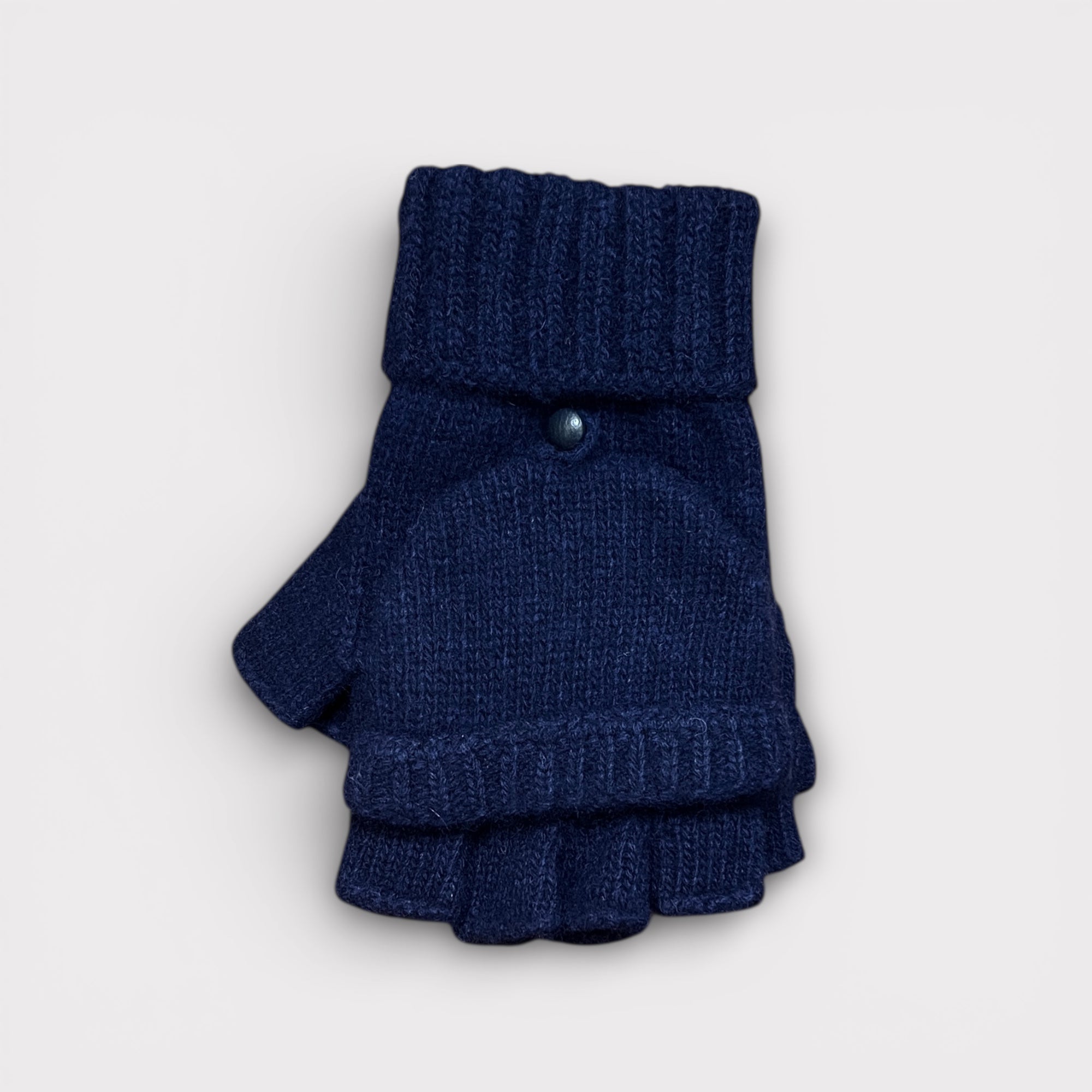 Moffola da uomo in lana e cashmere Santacana. Guanti senza dita con pattina richiudibile per coprire le dita. Morbidi, caldi e confortevoli, con bottoncino in pelle. Taglia unica.