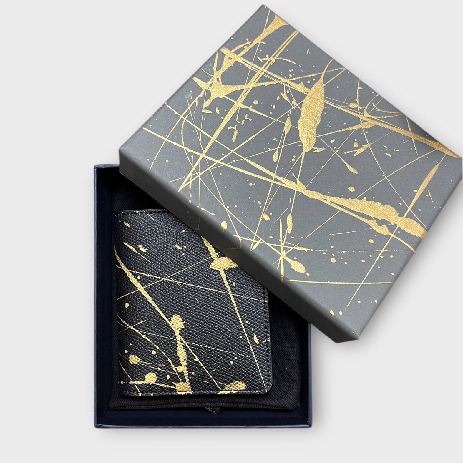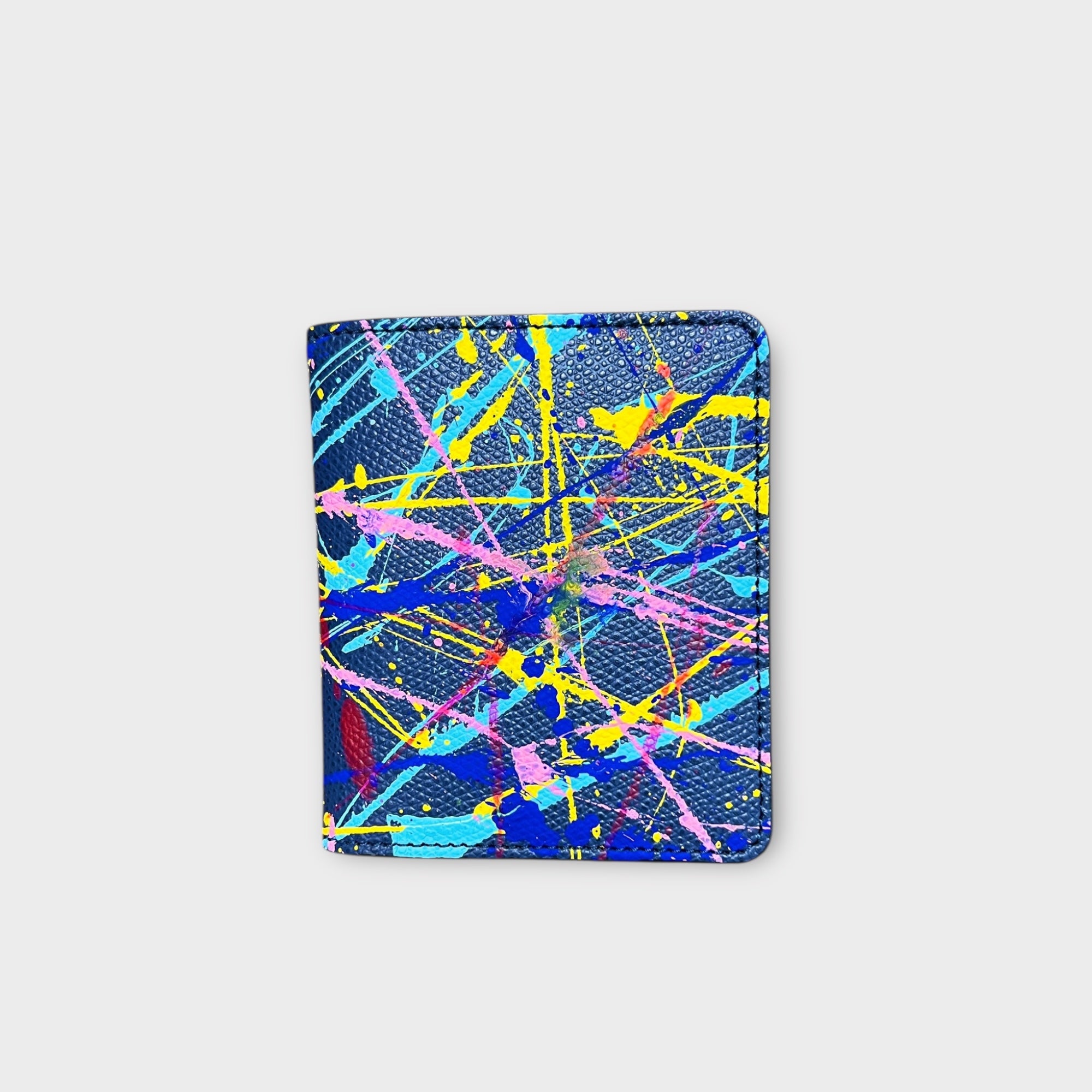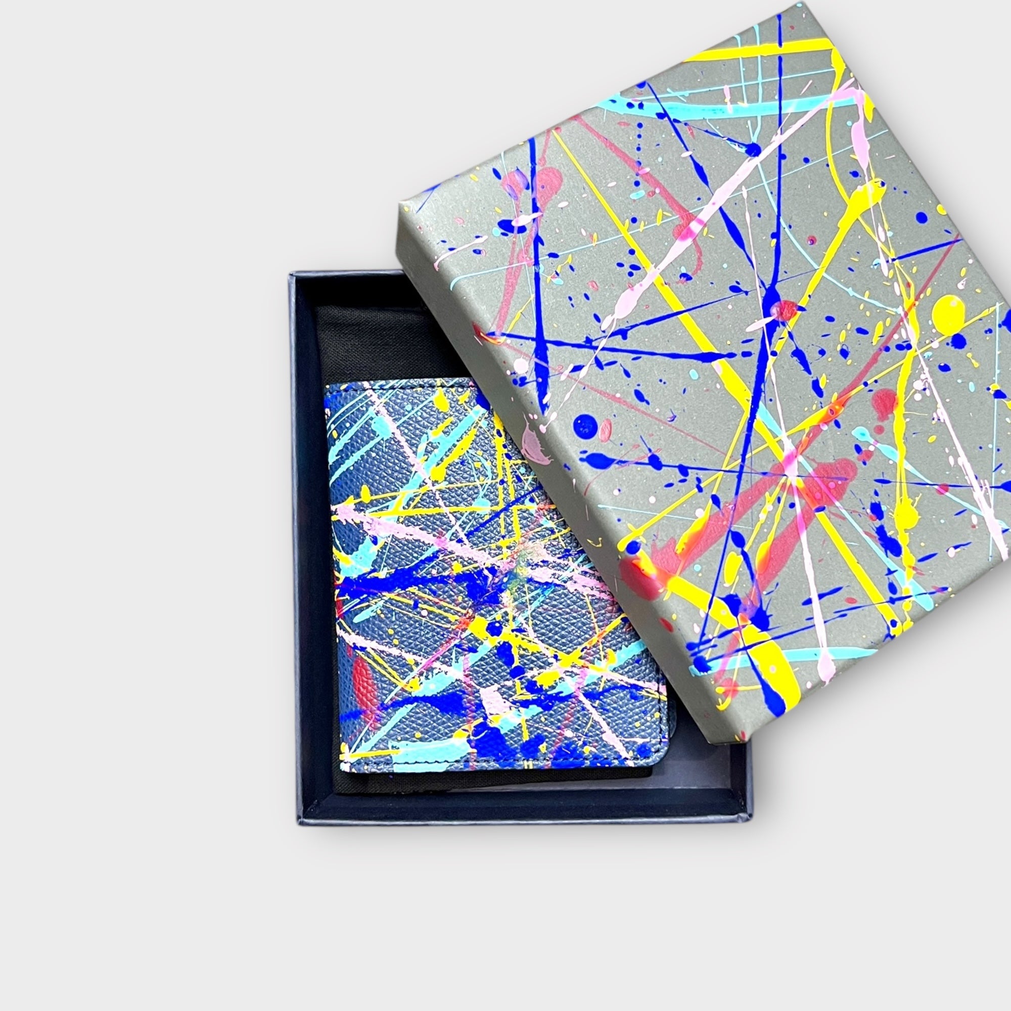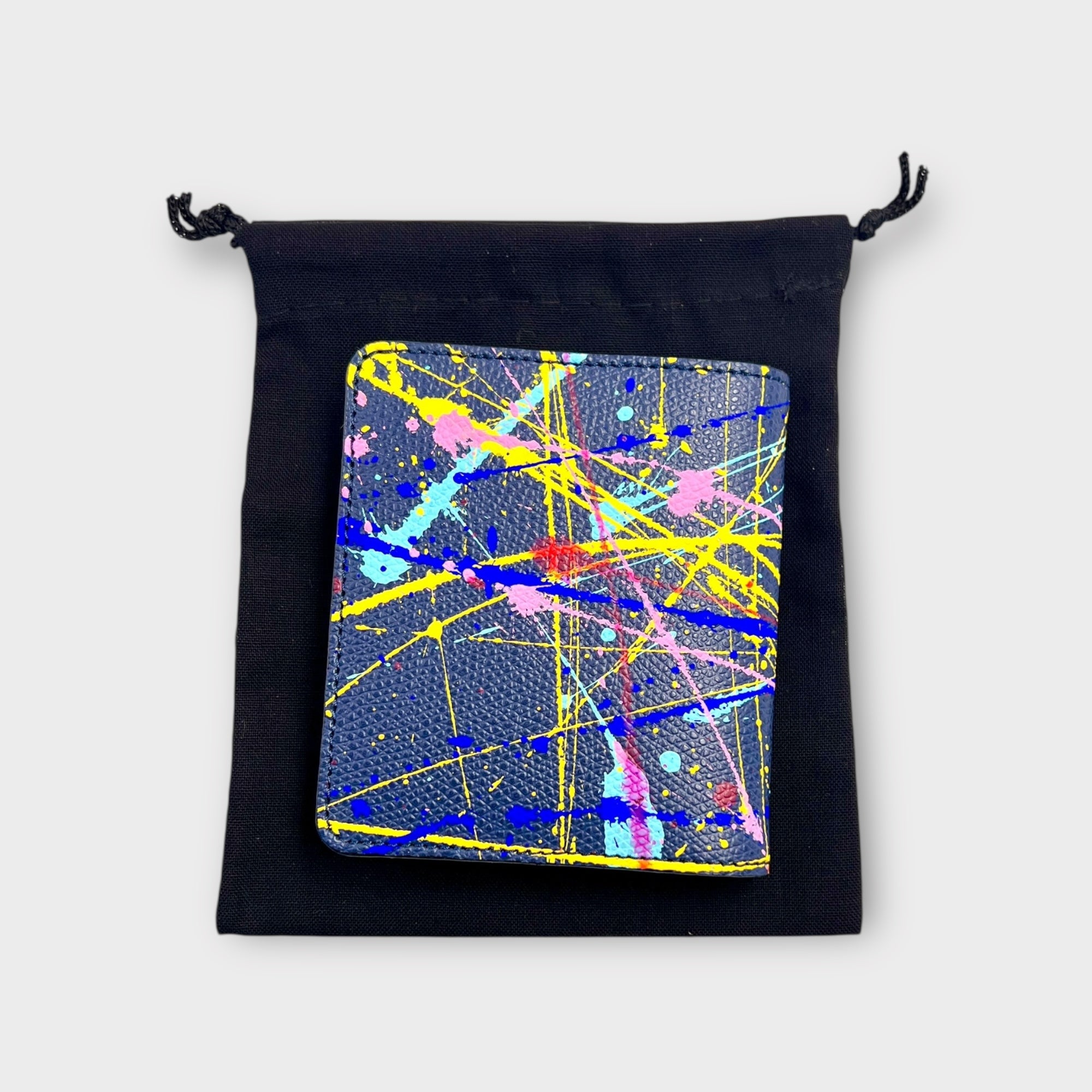 Portacarte in vera pelle Saffiano dipinta a mano dall’artista Mamiki, con scomparti per carte e contanti. Confezione artigianale. Made in Italy.