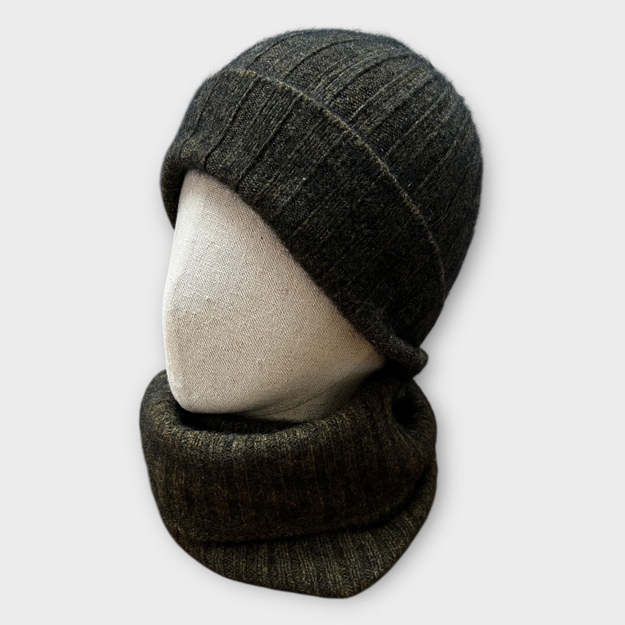 Scaldacollo tubolare unisex in possum, merino e seta. A coste, lungo 43x25 cm, morbido ed elastico. Da indossare piegato o arricciato