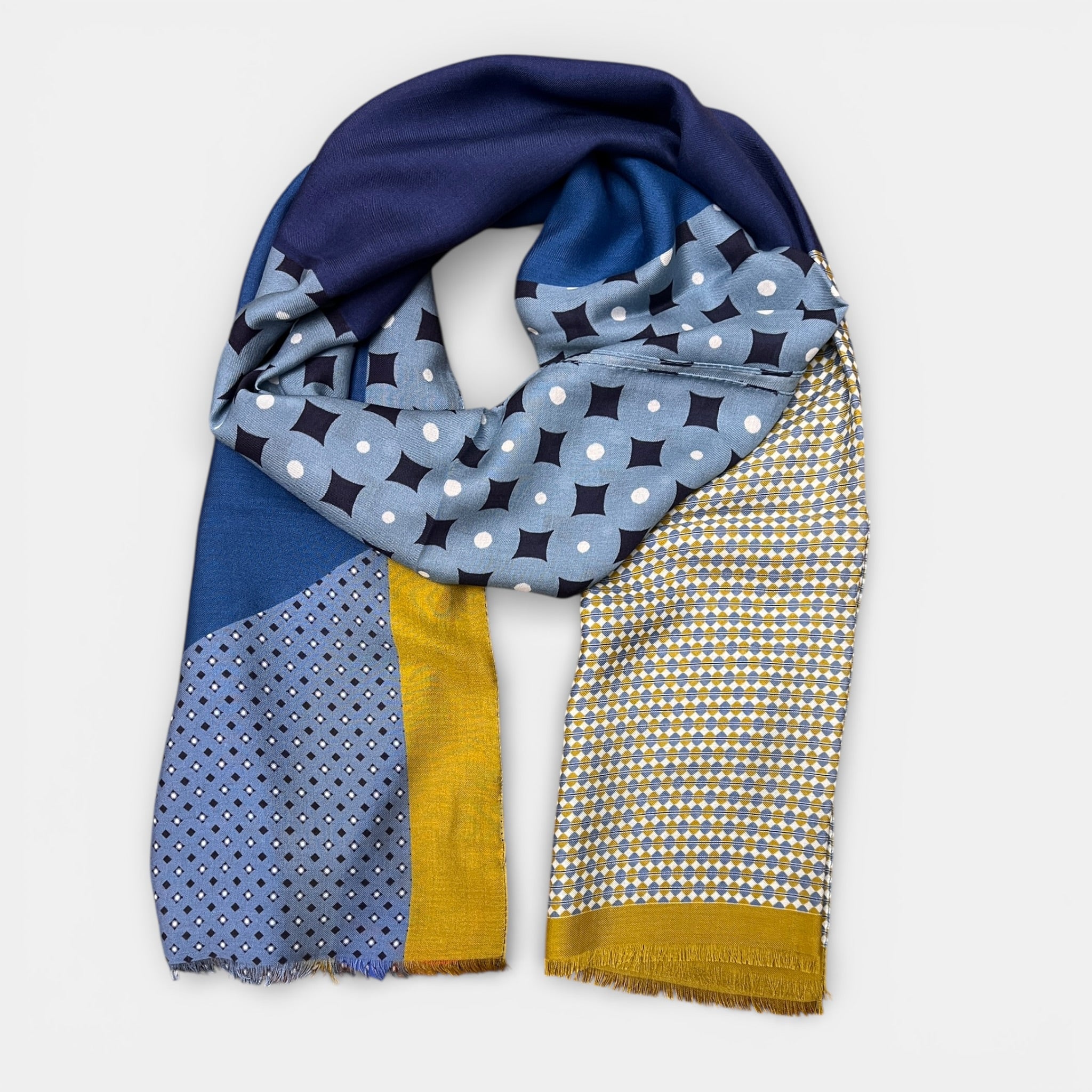 • Grazie alla lavorazione twill, il tessuto presenta una struttura diagonale molto elegante che dona alla sciarpa una caduta fluida e raffinata, mantenendo allo stesso tempo resistenza e durata nel tempo.