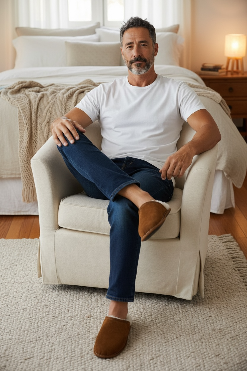 Pantofole realizzate in montone scamosciato con interno in vera pelliccia di montone, progettate per offrire il massimo comfort e un isolamento termico naturale. La combinazione di pelle scamosciata e pelliccia garantisce morbidezza al contatto con il piede e una sensazione di calore costante anche nelle giornate più fredde.