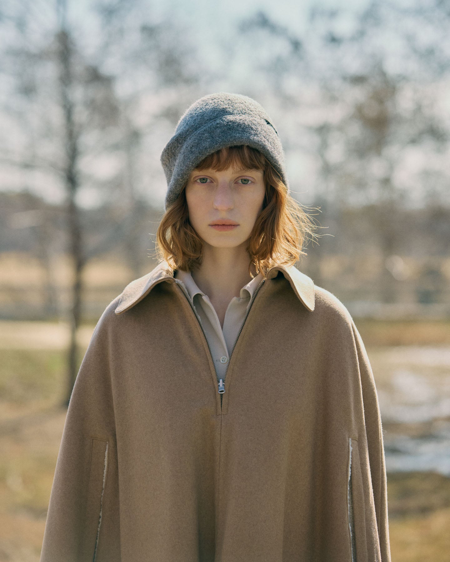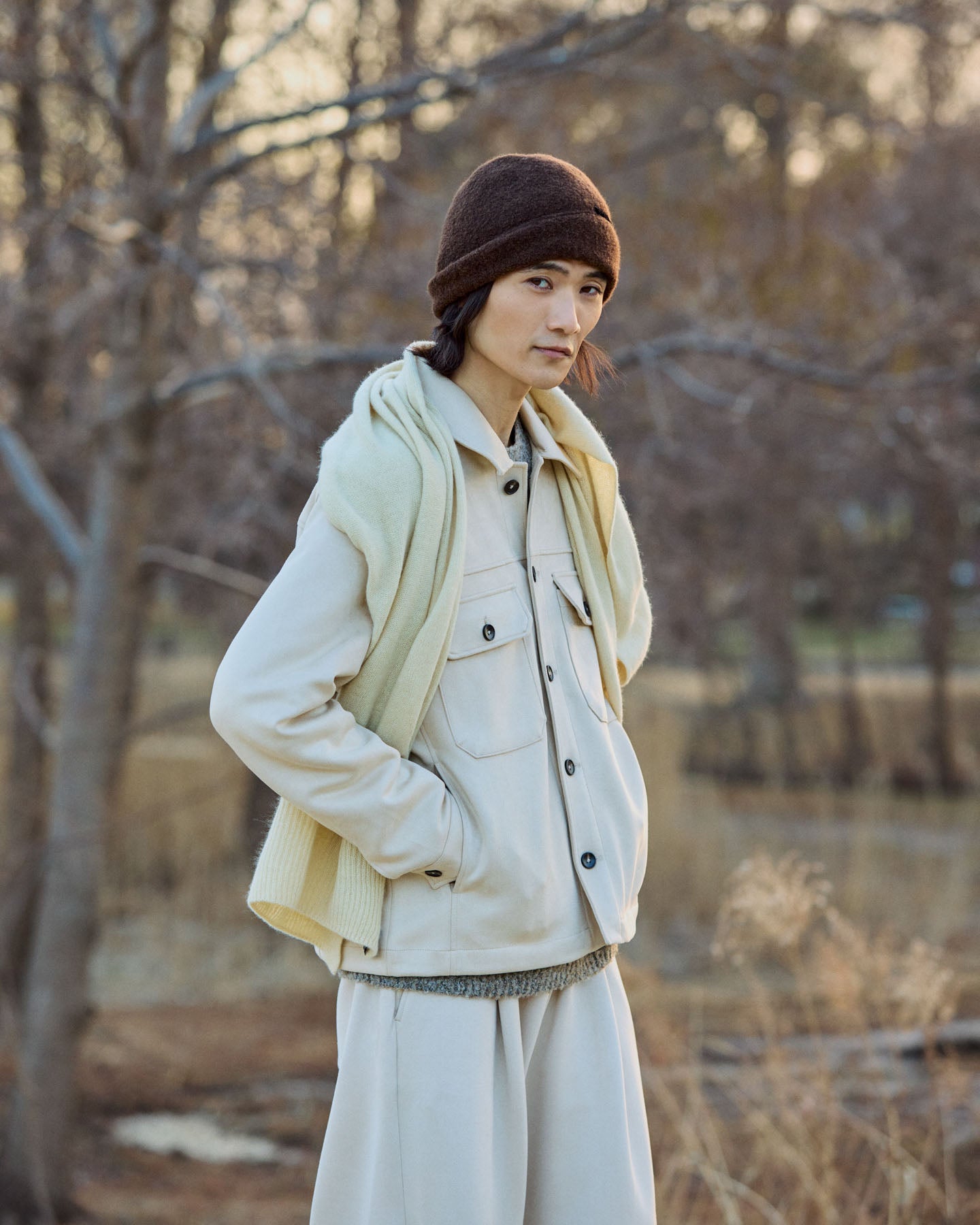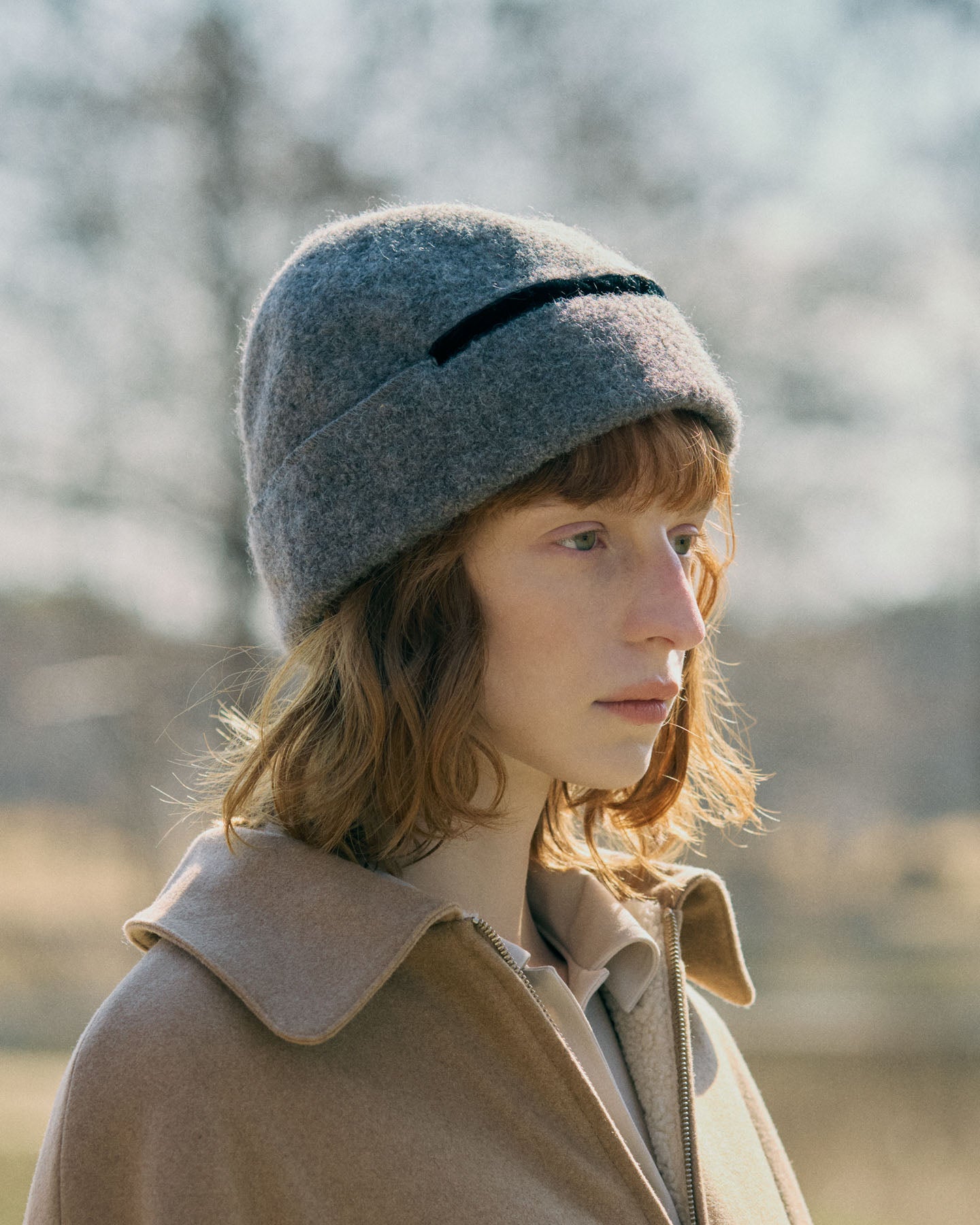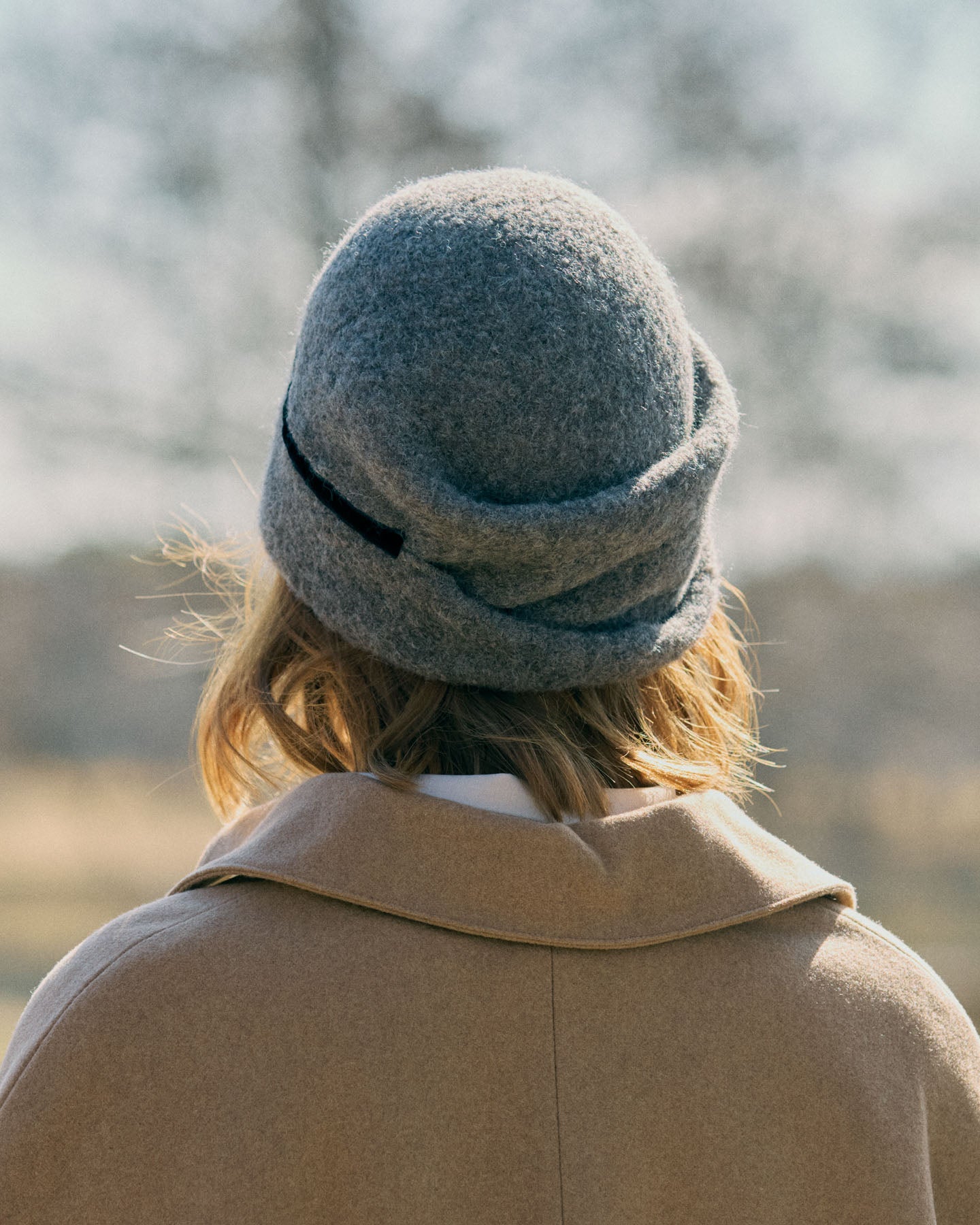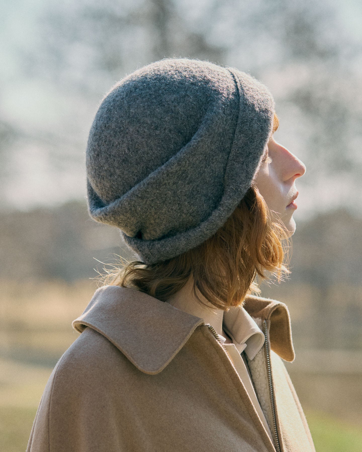 Berretto beanie in panno di alpaca e lana, morbido e modellabile. Si indossa con risvolto esterno o interno per creare diverse forme. Made in Japan.