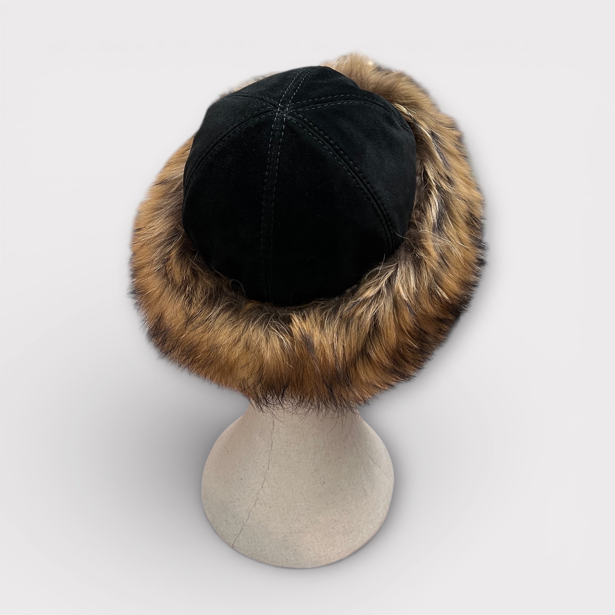 Colbacco in vera pelliccia naturale con cupola in pelle scamosciata e interno in pile caldo. Modello pieghevole e leggero, ideale per l’inverno più freddo. Taglia S (54/55)