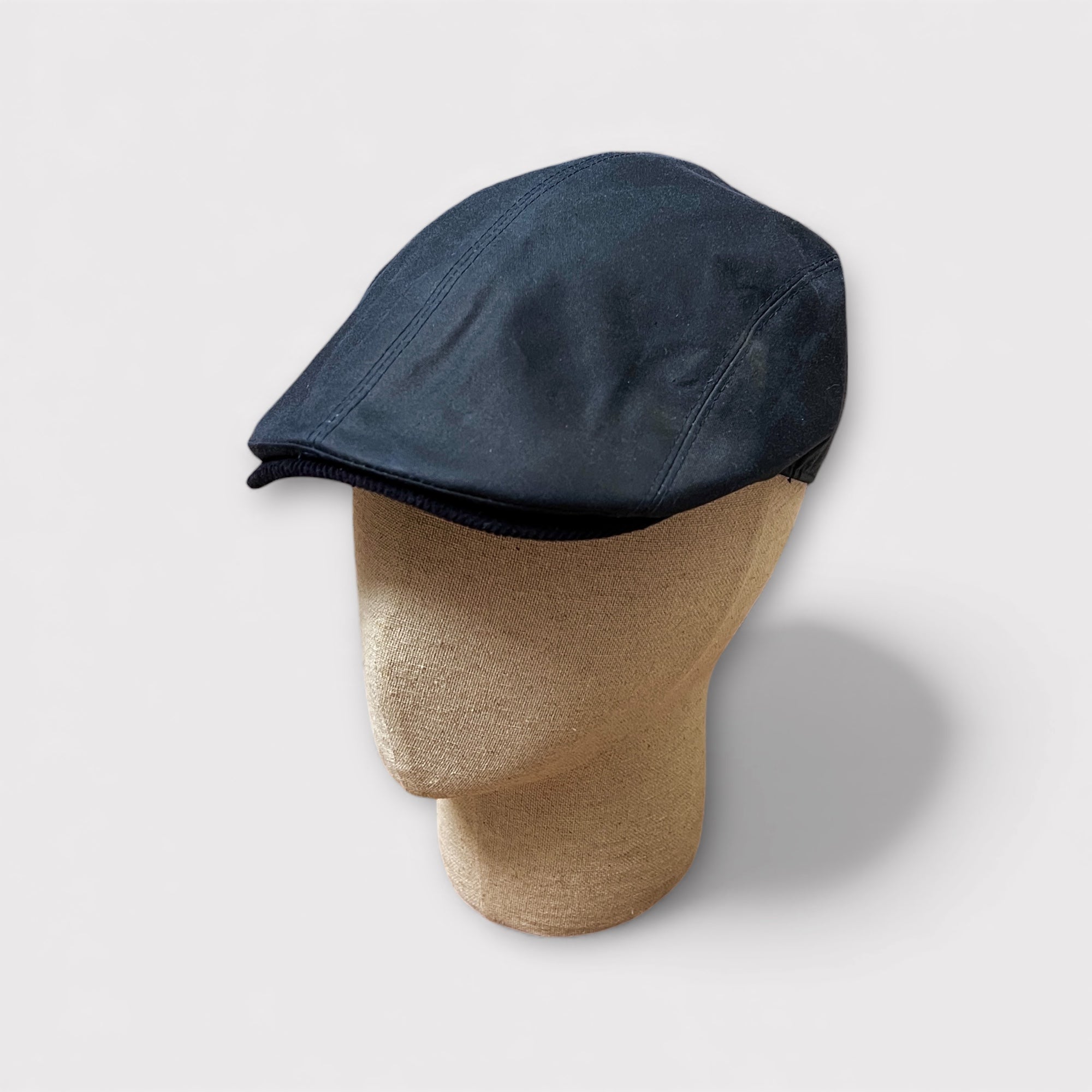 Coppola duck in cotone cerato antipioggia, fodera in lana per calore e comfort, elastico sulla nuca e qualità artigianale. Blu, ideale per mezze stagioni e inverno. Made in Italy.